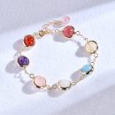 韓版天然水晶粉晶紫晶草莓晶七脈輪手鍊女韓版甜美森系七彩轉運珠18K真金彩虹手鍊 (水晶 天然)