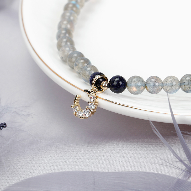 星月神話天然藍砂石水晶灰月光石多圈手串浪漫星空韓版氣質女生手鍊 (灰月光)