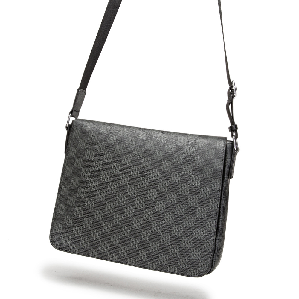 經典黑格男士翻蓋郵差包大容量多隔層肩背斜背包商務休閒包包 (黑色)