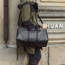 法式經典設計黑色方格軟皮男大容量可插行李箱手提肩背旅行包休閒包 (黑格)