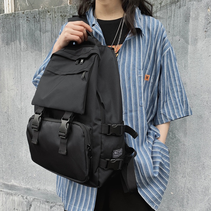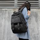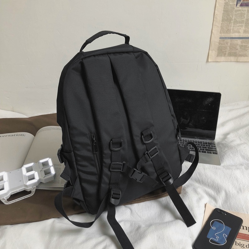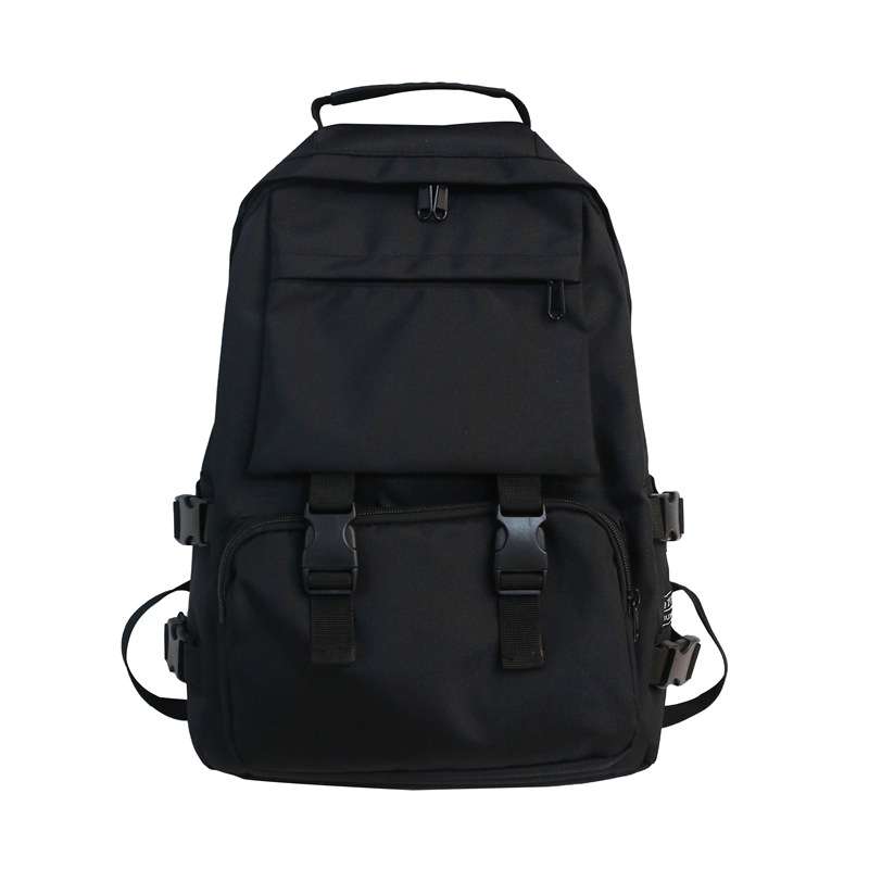 韓版純黑氣質男女牛津布大容量休閒出行戶外雙肩書包後背包 (黑色)