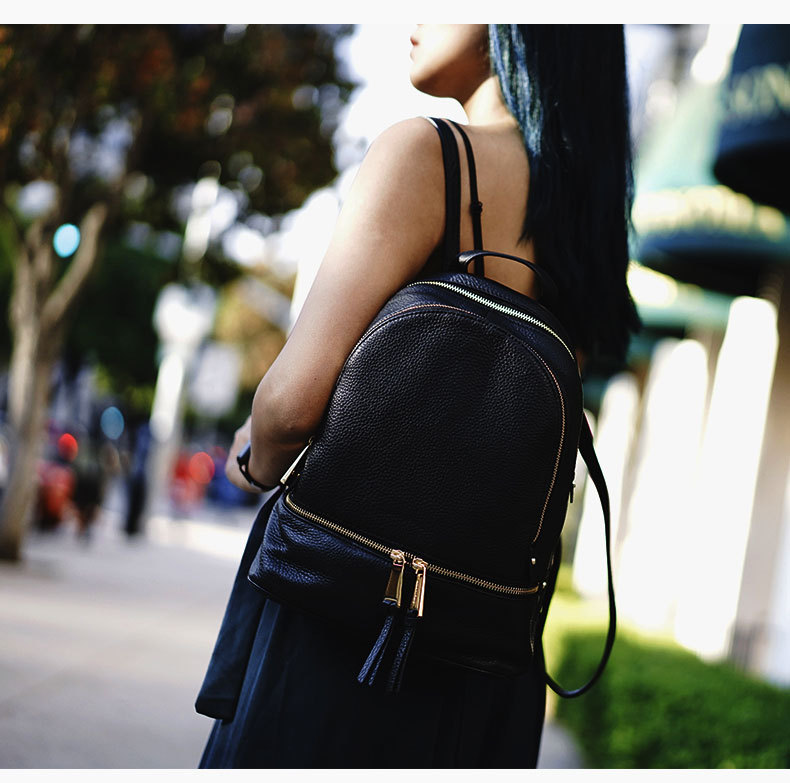 韓版純色時尚複古紋理PU皮雙肩包休閑百搭學生背包旅行包後背包