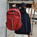 日系原宿風格純色反光工裝男女通用中性款休閑雙肩後背包