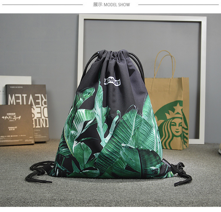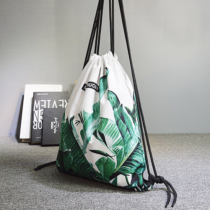 日系清新IG風格夏季芭蕉葉大容量潮流抽繩男女健身包手提雙肩後背包