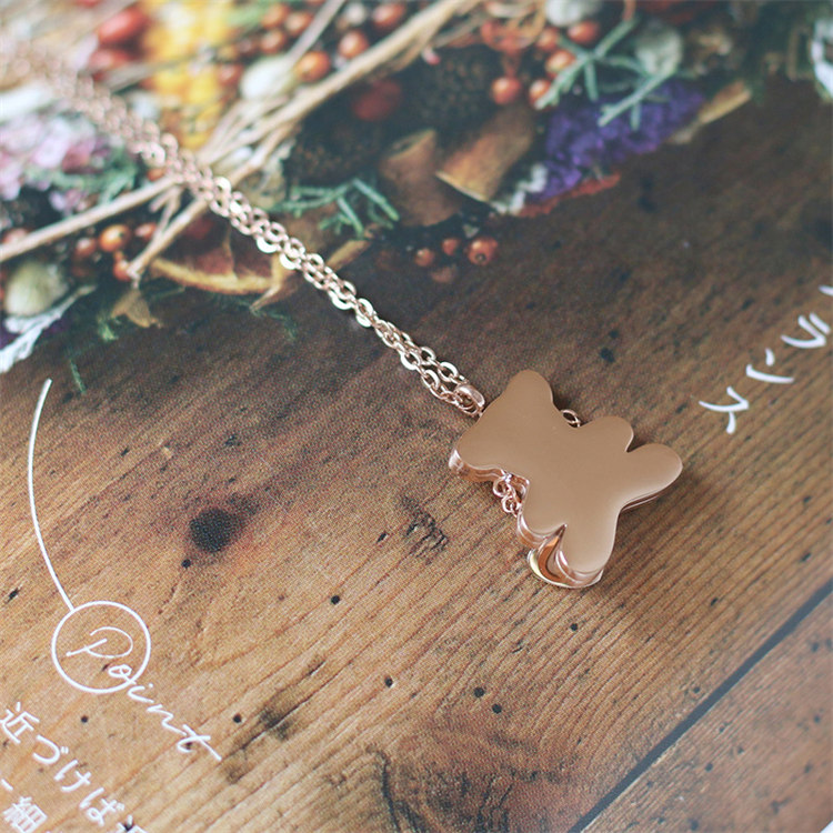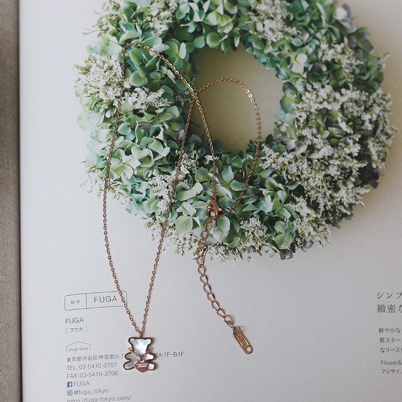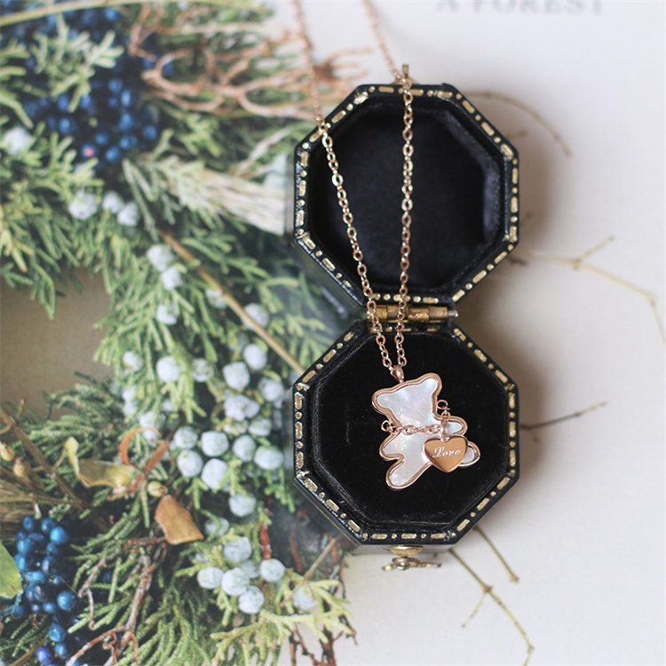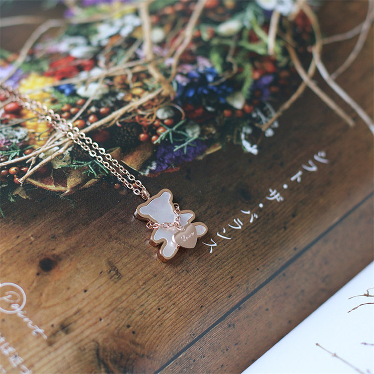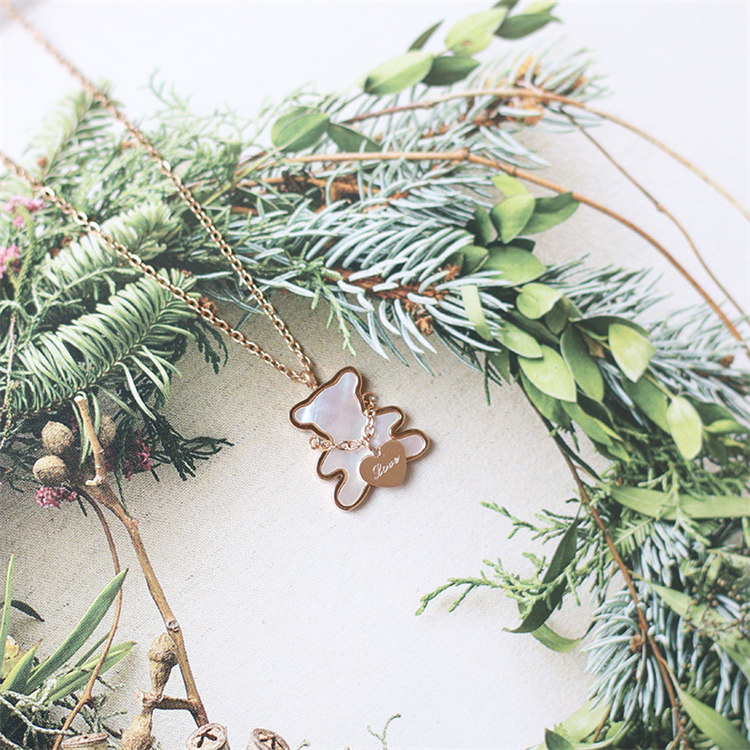 擁抱妳的熊熊 | 天然白貝母 | 鈦鋼電鍍玫瑰金 | LOVE愛心抱抱熊玫瑰金色女生項鍊