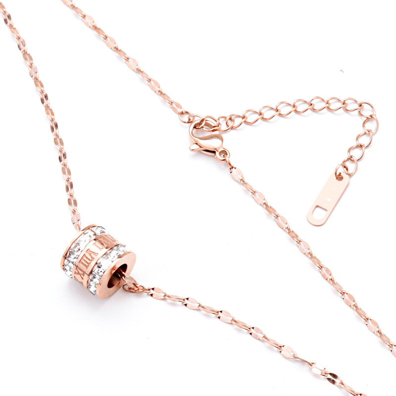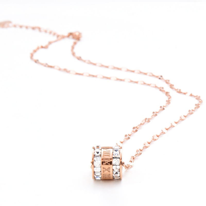韓劇爆紅嘴唇鏈轉運珠鈦鋼鍍玫瑰金項鍊滿鑽羅馬數圓柱吊墜鎖骨鍊 (轉運珠)