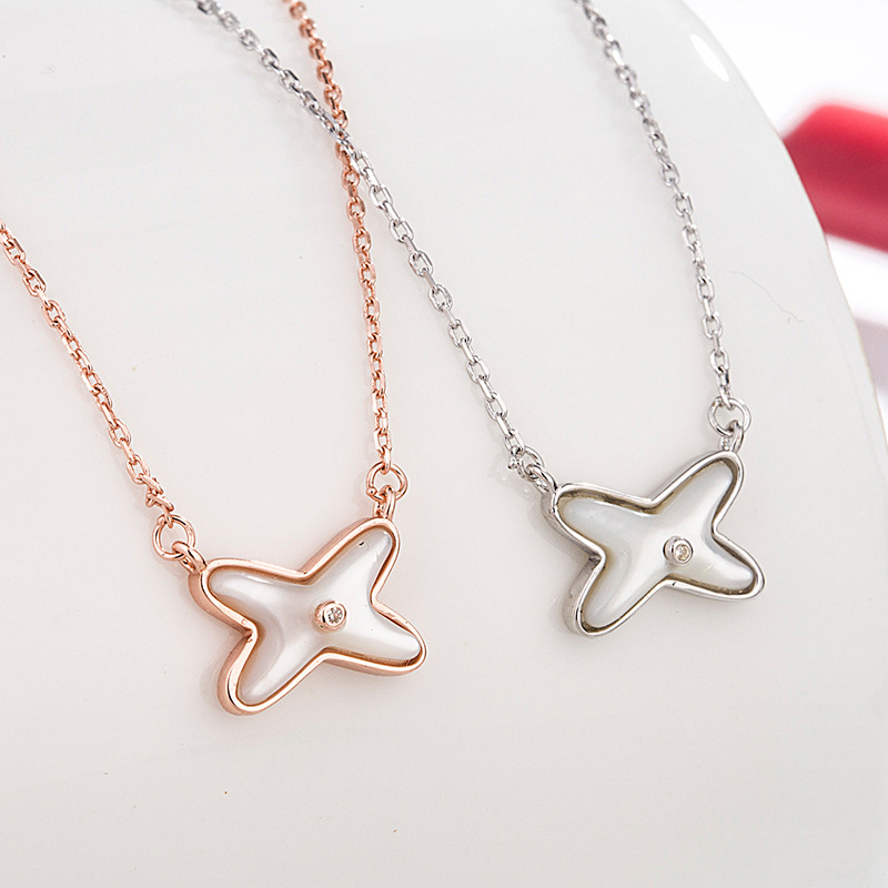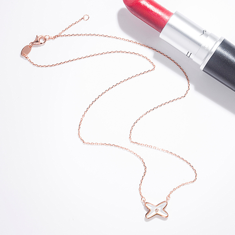 S925純銀甜美個性白貝母交叉X吊墜項鍊鎖骨鍊