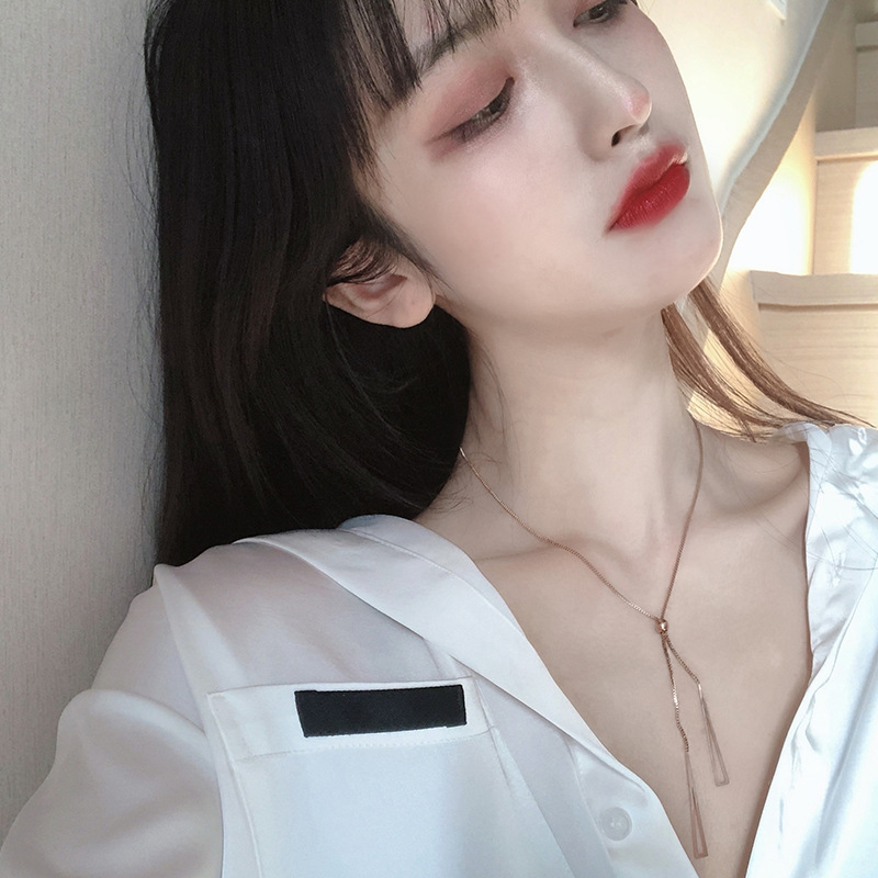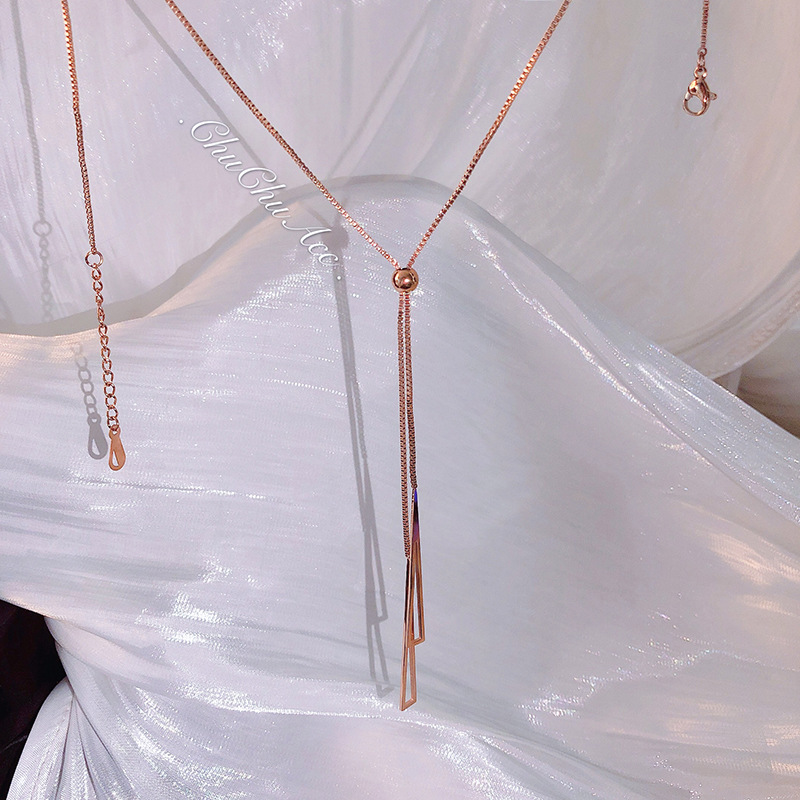性感法式鈦鋼鍍金吊墜項鍊女潮氣質高級感時尚簡約禮服鎖骨鍊 (細三角)