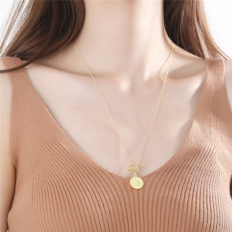 S925純銀鍍金英式復古伊麗莎白女王浮雕人像圓環吊墜項鍊鎖骨鍊 (女王人像 925純銀)