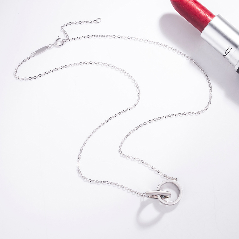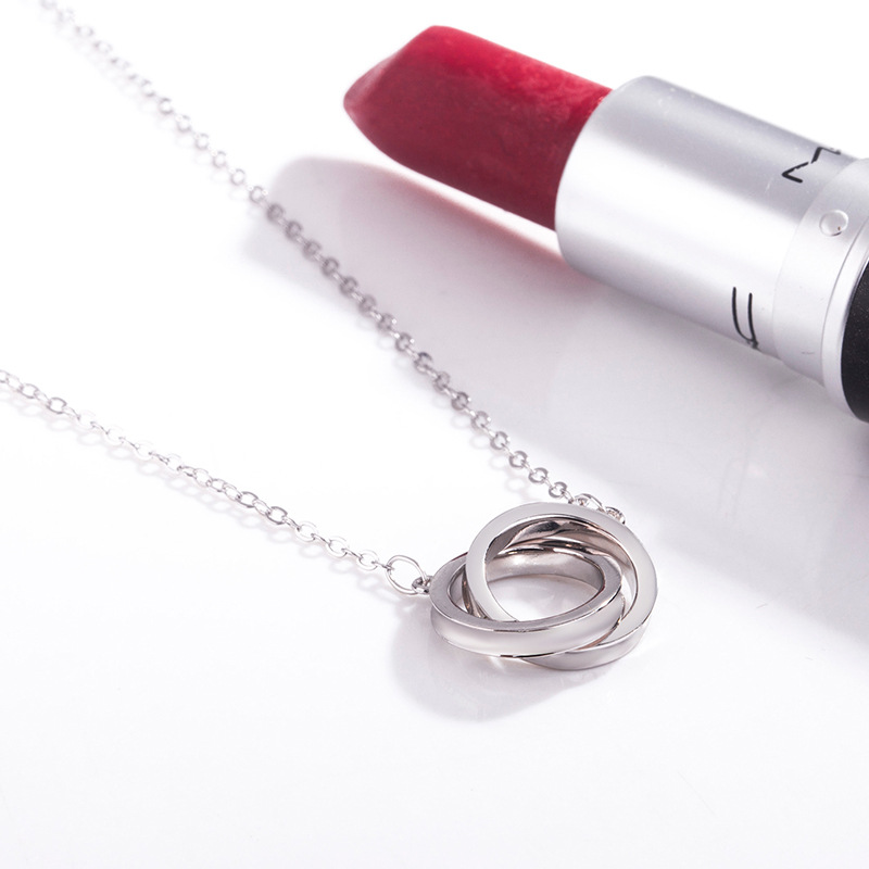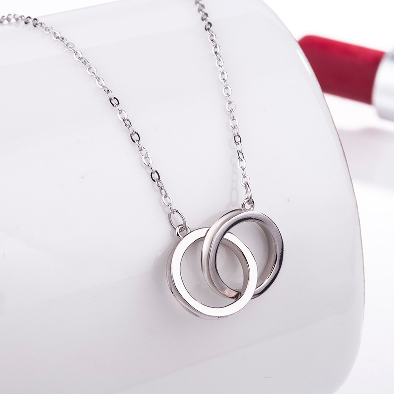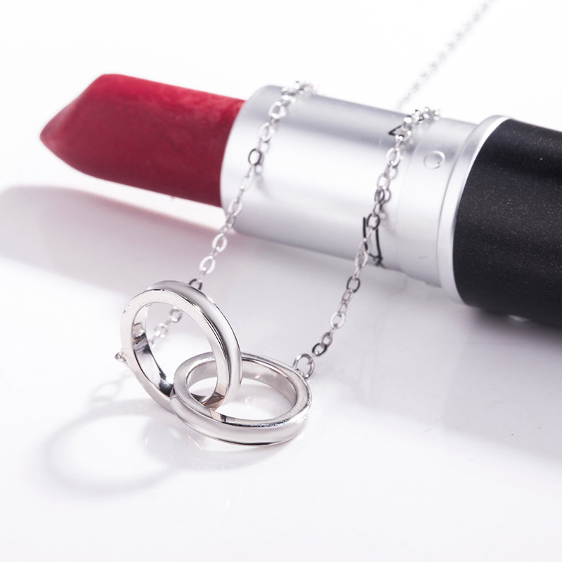 S925純銀輕奢經典設計復古雙圈吊墜項鍊鎖骨鍊 (白金色 925純銀)