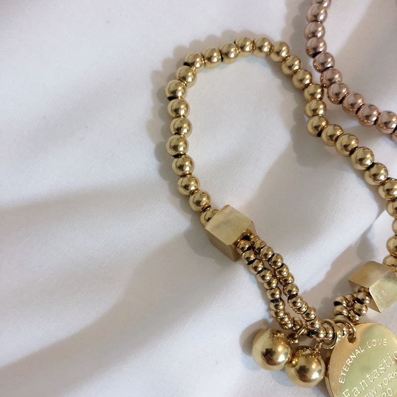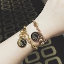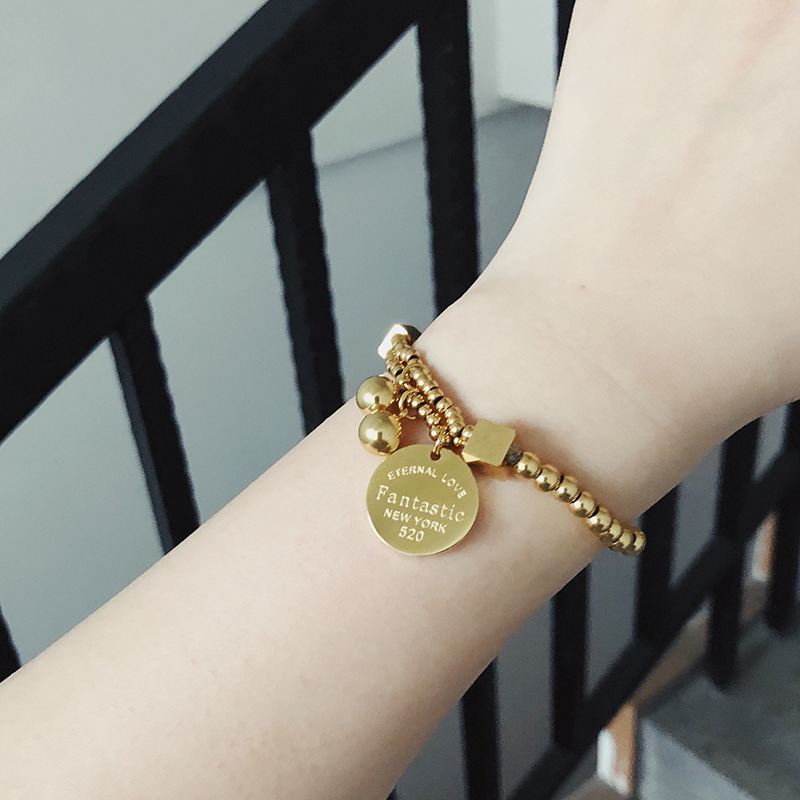 FANTASY字母圓牌硬幣鈦鋼鍍18K金手鍊