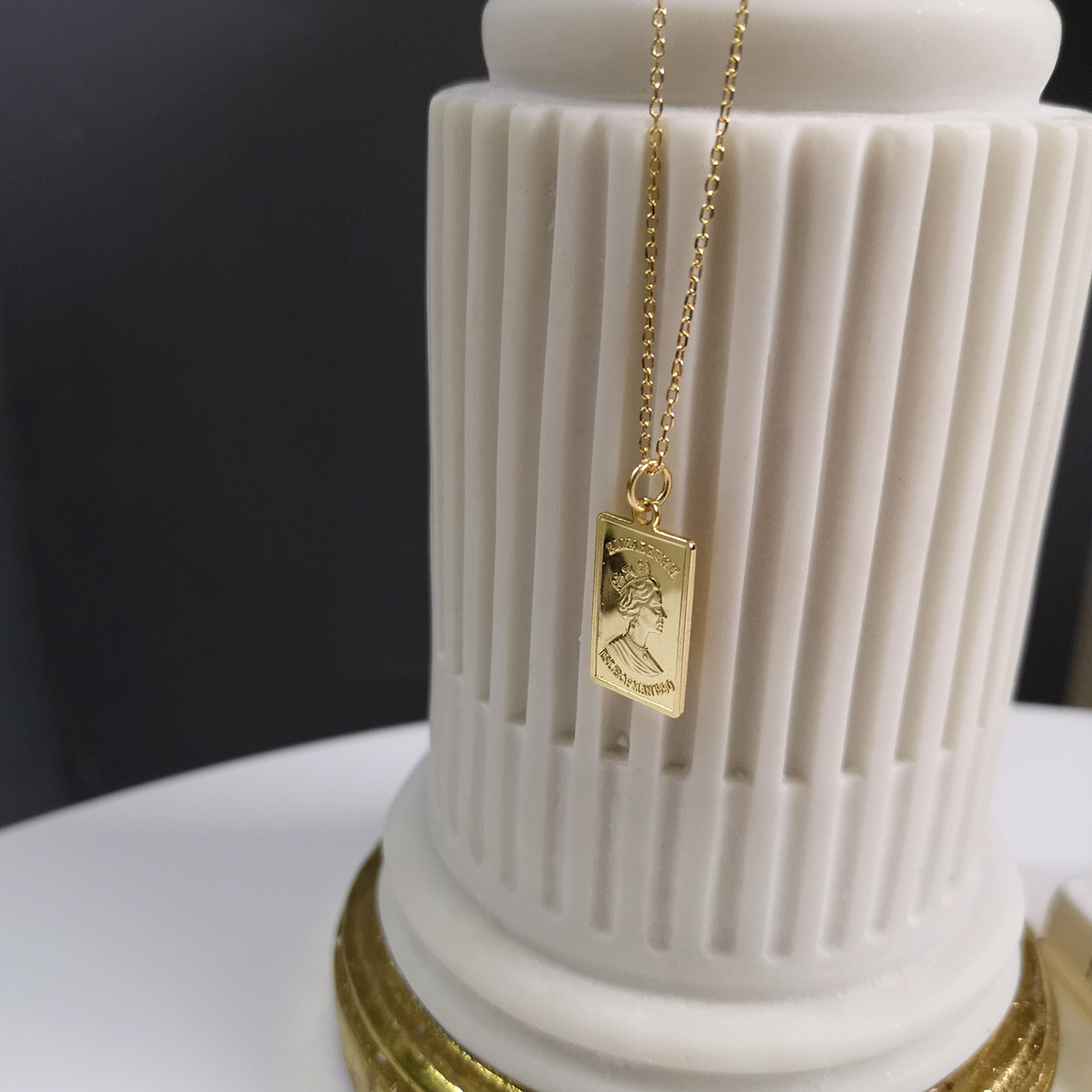 S925純銀鍍金英式復古伊麗莎白女皇浮雕方牌項鍊鎖骨鍊 (女皇伊麗莎白方牌 925純銀)