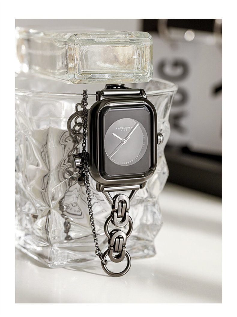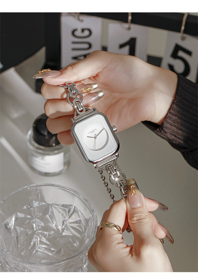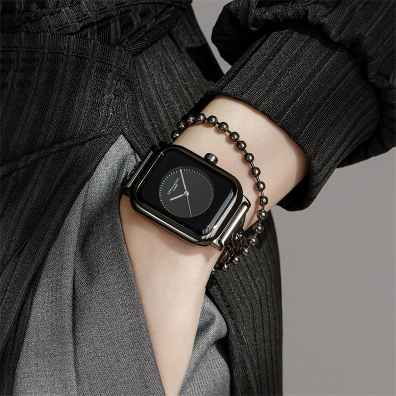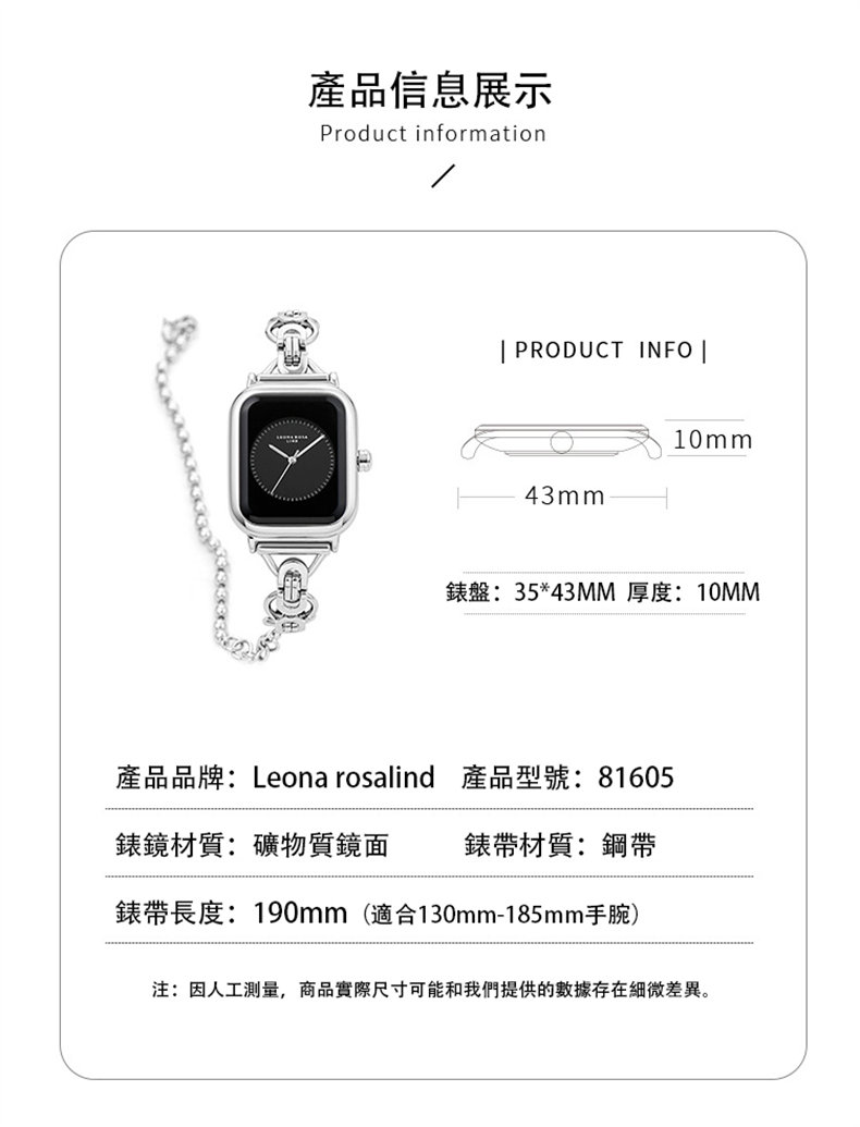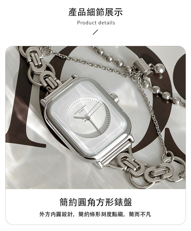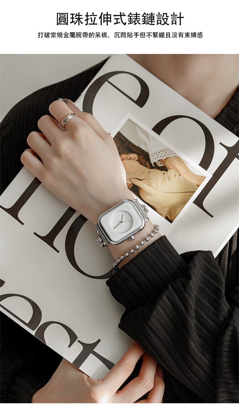 外圓內方錶盤 | 不鏽鋼拉伸式圓珠錶鍊 | 日本進口機芯 | 30米防水 | LEONA ROSALIND超酷個性設計師款時尚女手錶