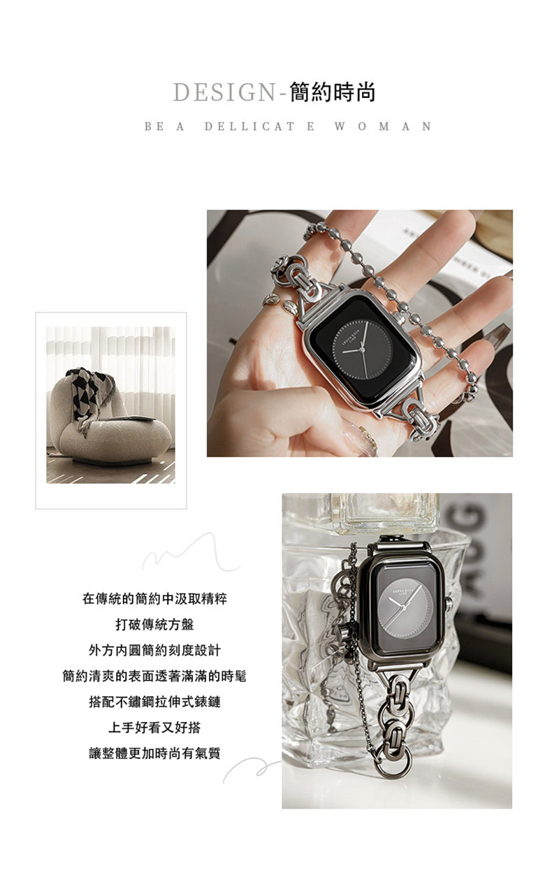 【款式】:簡約刻度搭配拉伸式錶鏈設計!