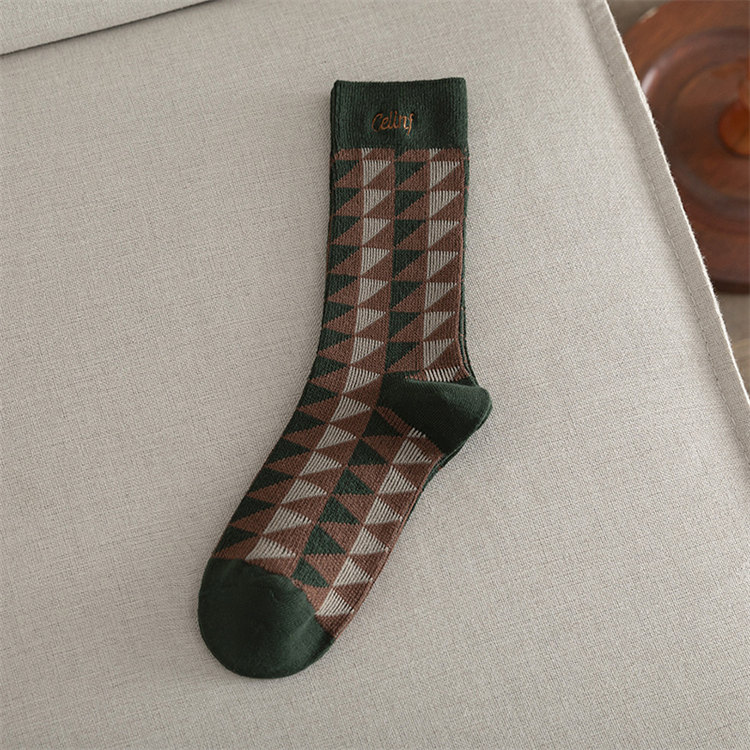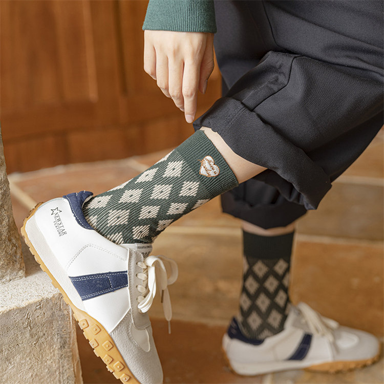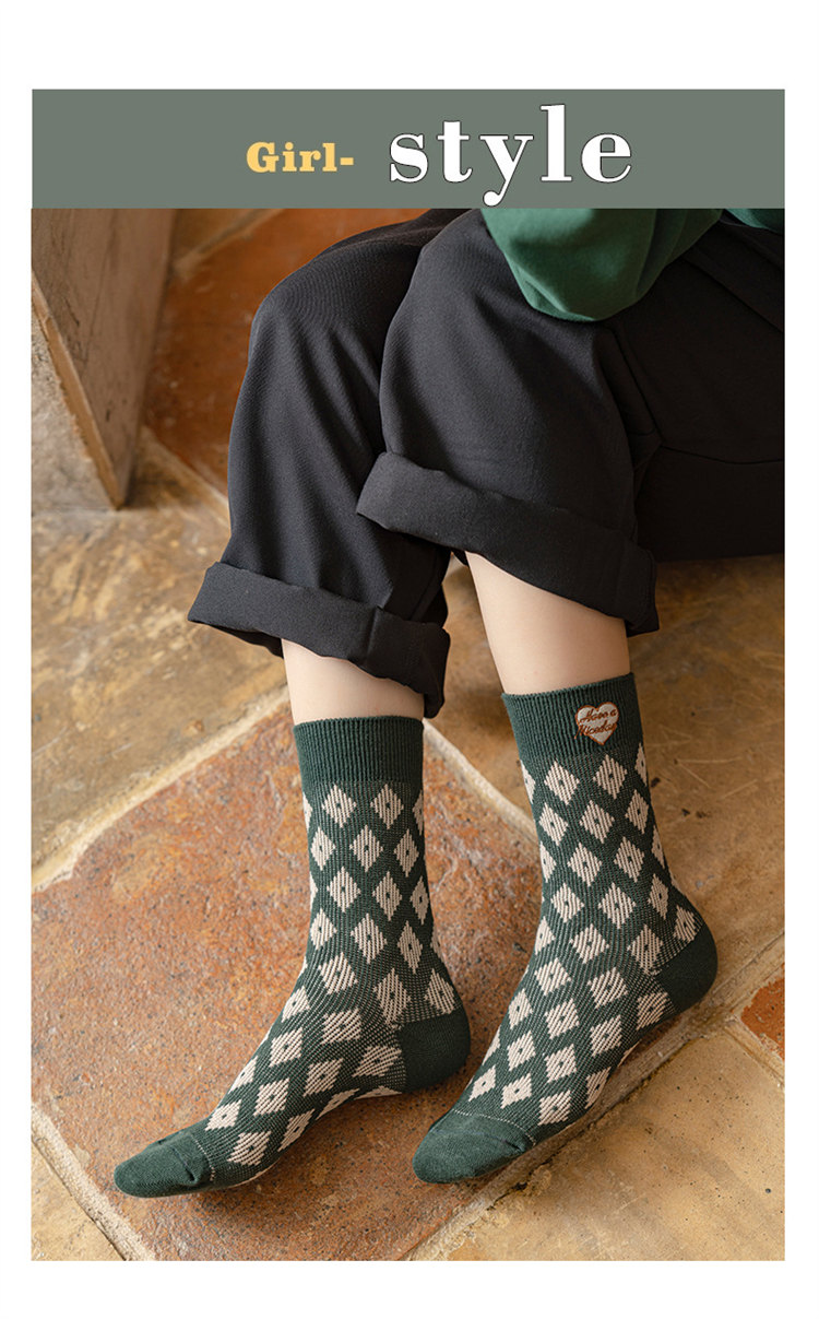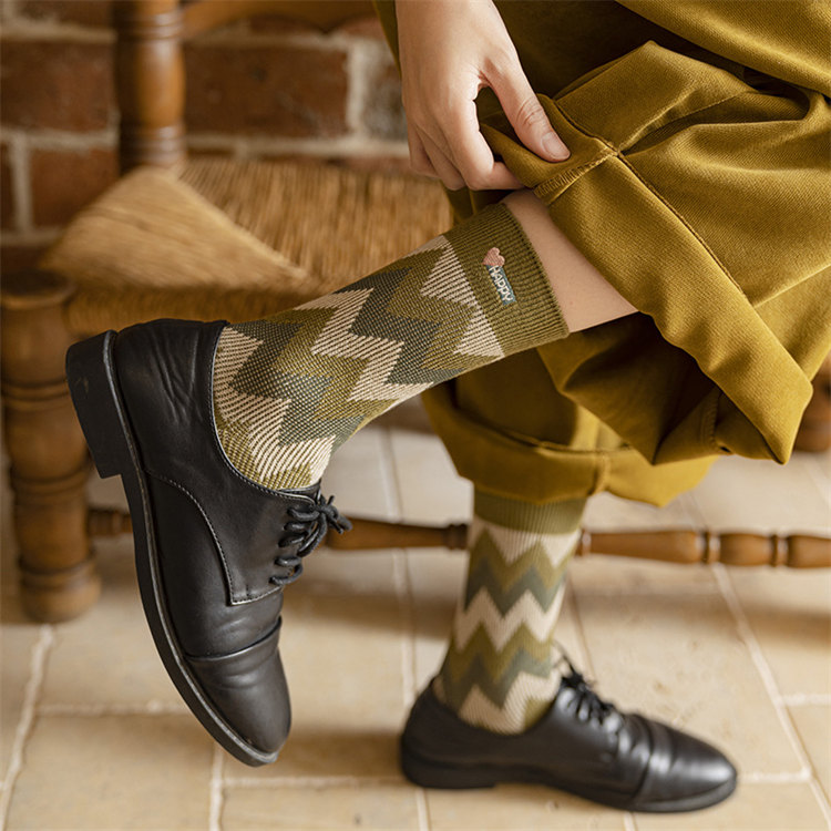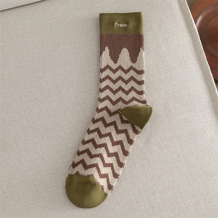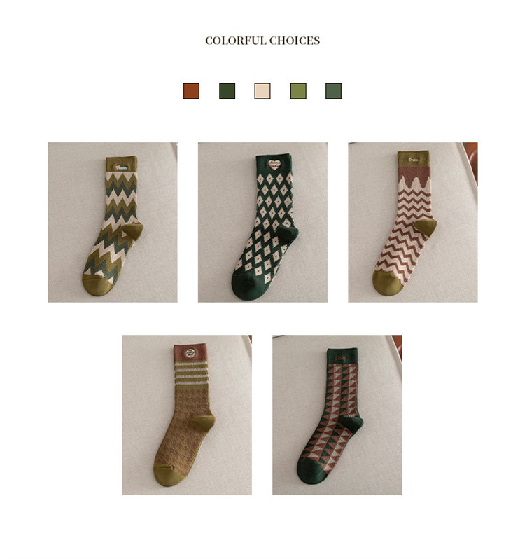超值混色五雙入 | 軟糯親膚舒適不勒 | 加固耐磨耐洗滌 | 透氣防臭 | 秋冬復古奶茶色系復古條紋波點清新除臭高筒保暖棉襪女長襪子