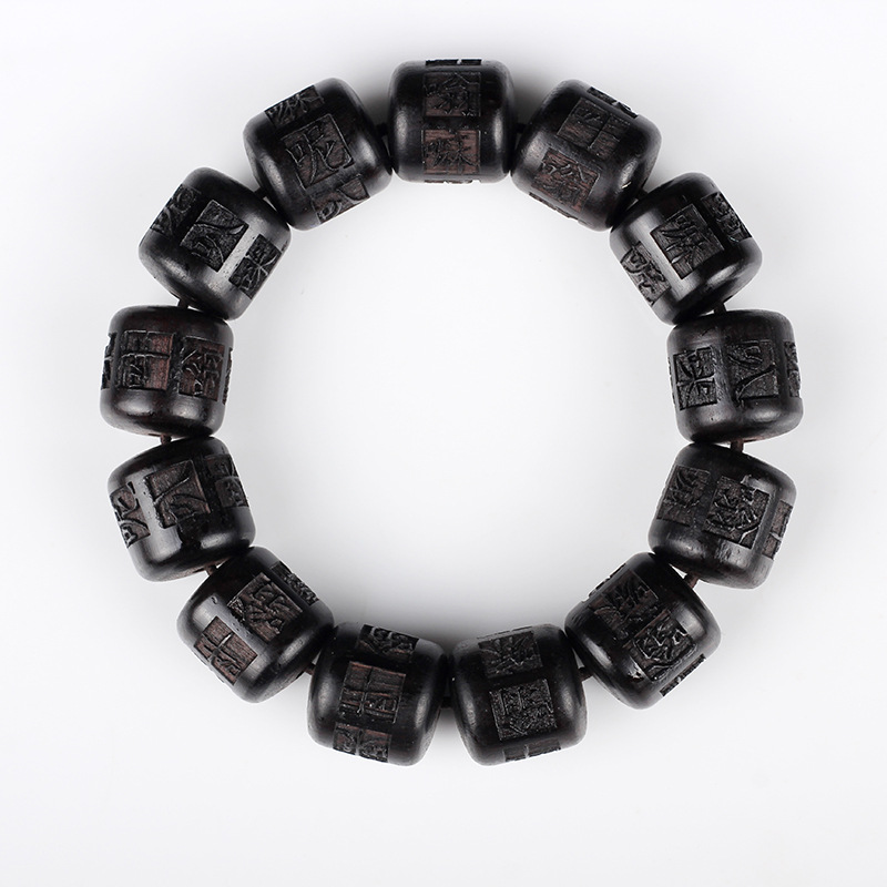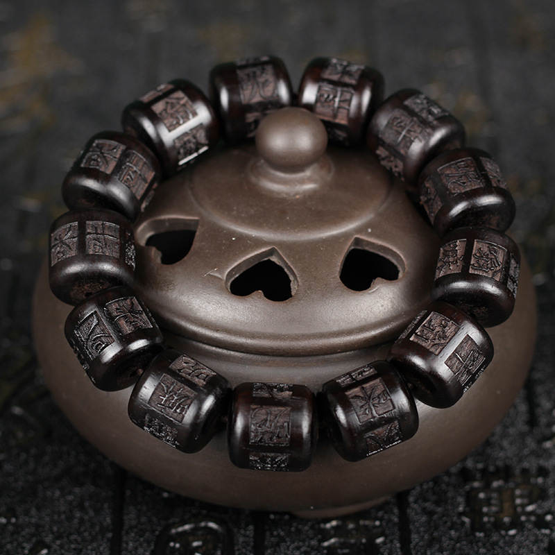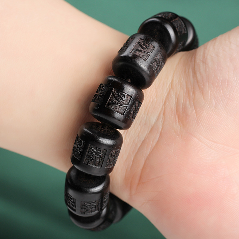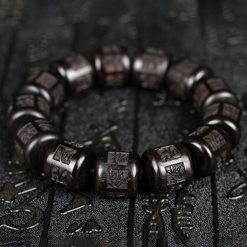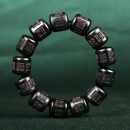 【天然雷擊棗木】【六字真言雕刻桶珠】原創設計天然雷擊棗木手雕六字真言桶珠單圈佛珠手串 (雷擊棗木 13mm*14mm*13顆)