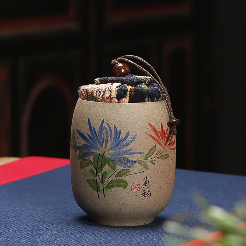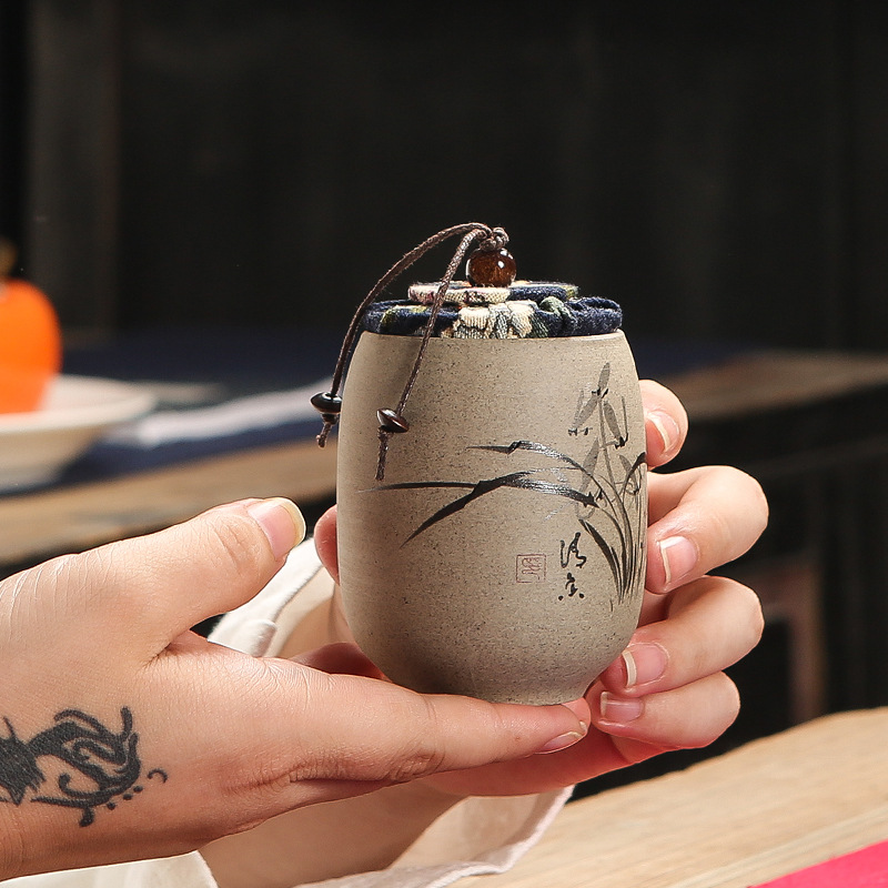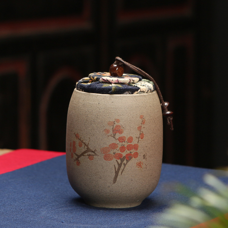 【蘭梅竹菊】小號古風手繪蘭梅竹菊粗陶密封便攜茶葉罐