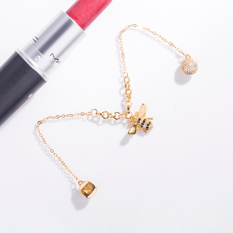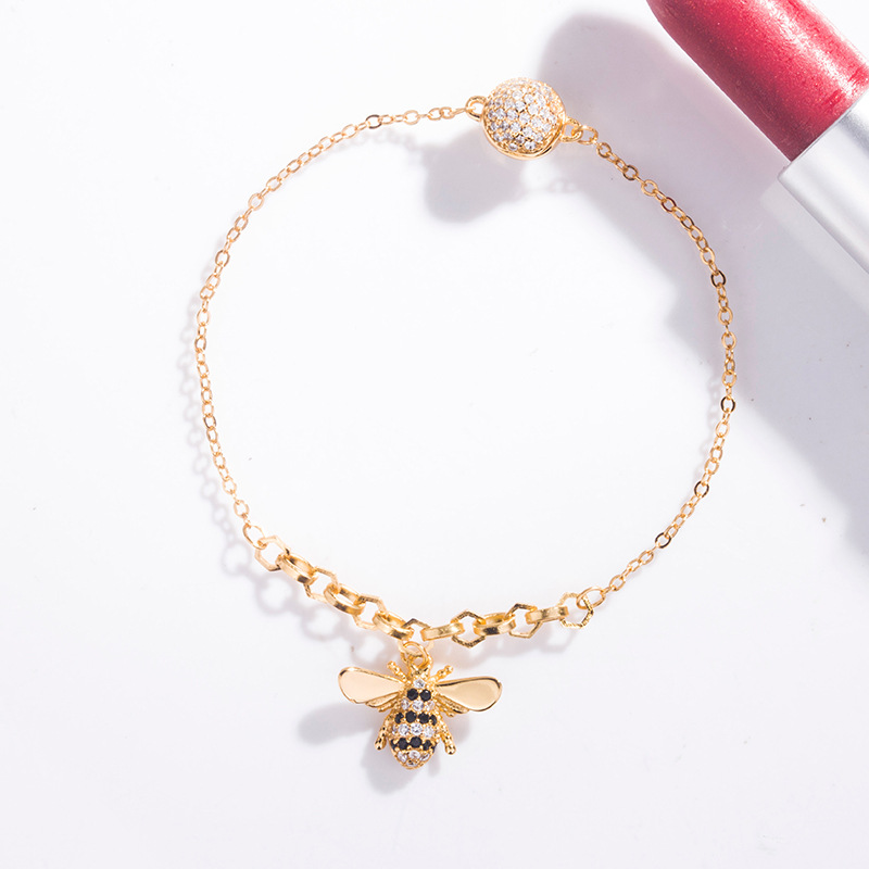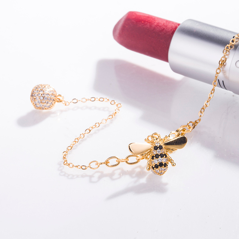 S925純銀鍍金輕奢法式文藝精工蜜蜂手鍊 (香檳金色 925純銀)