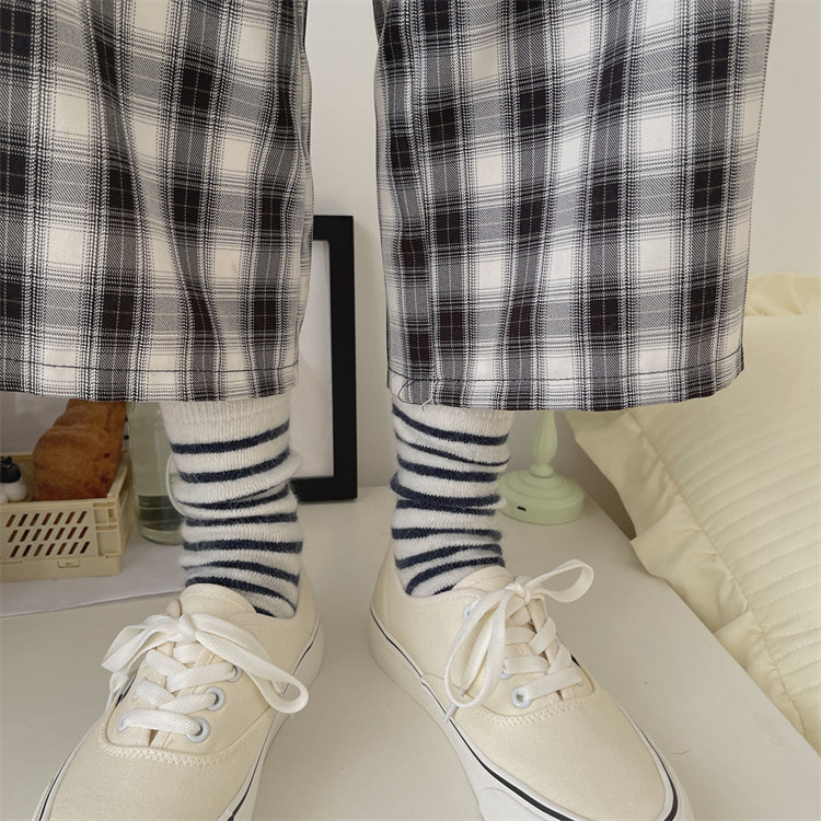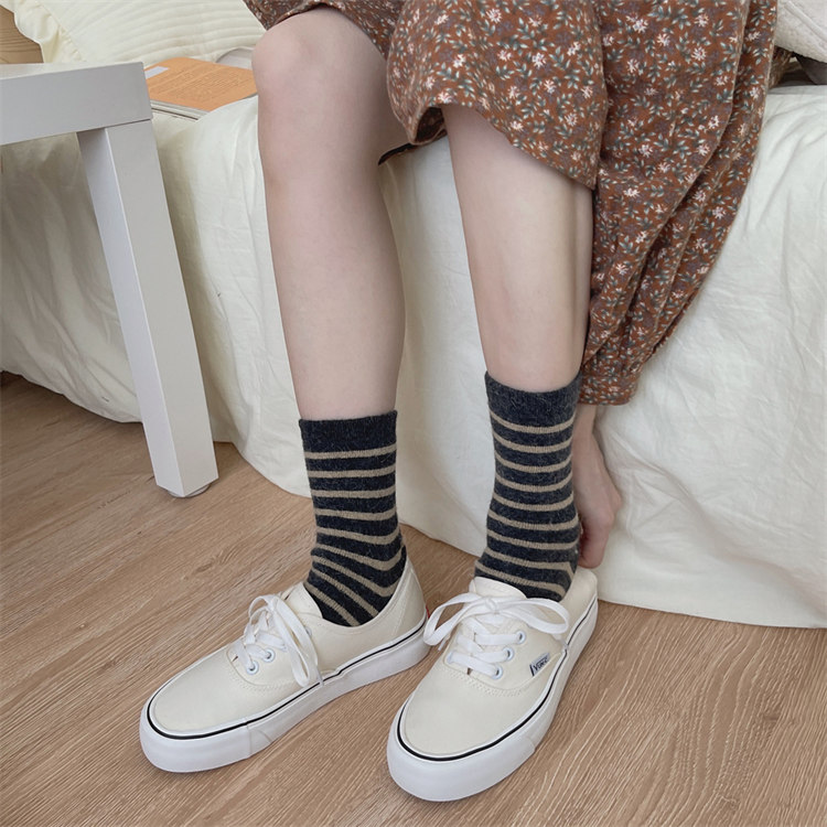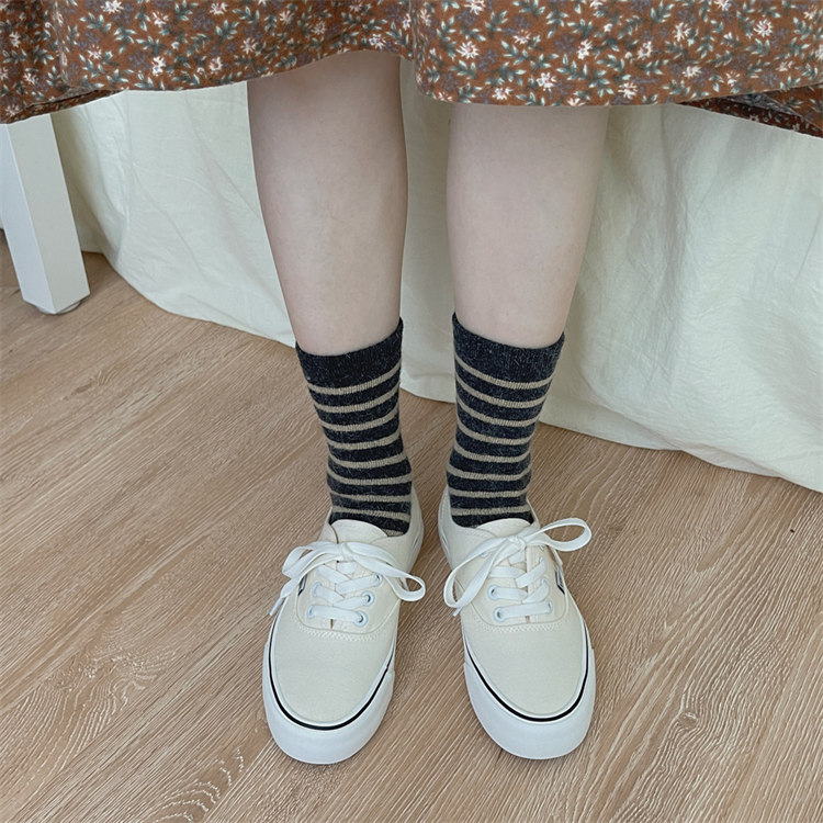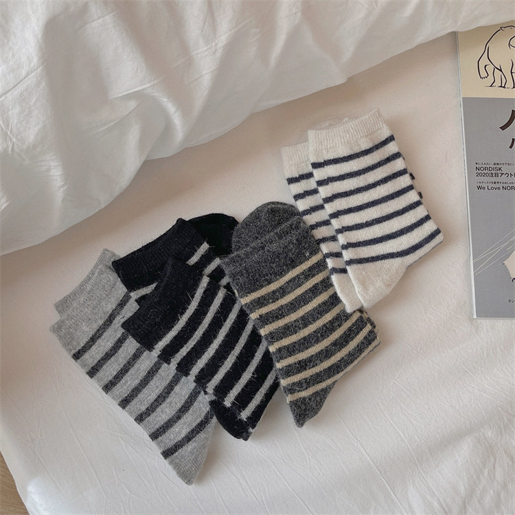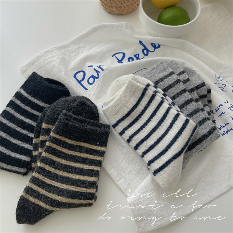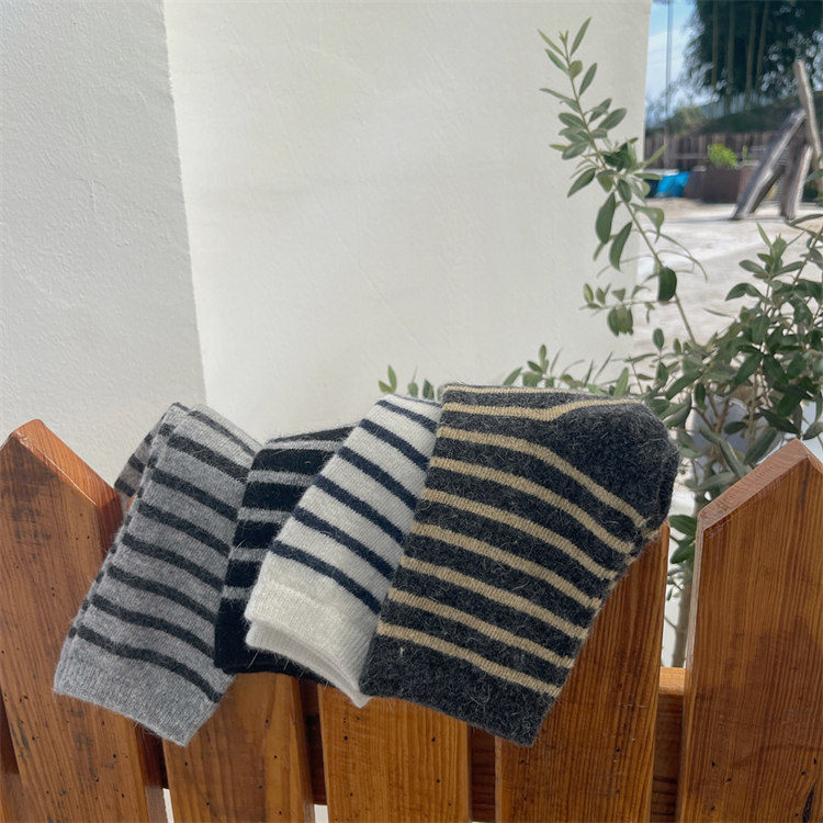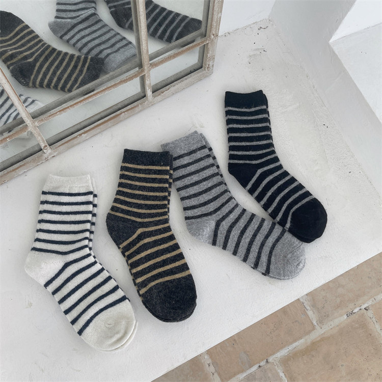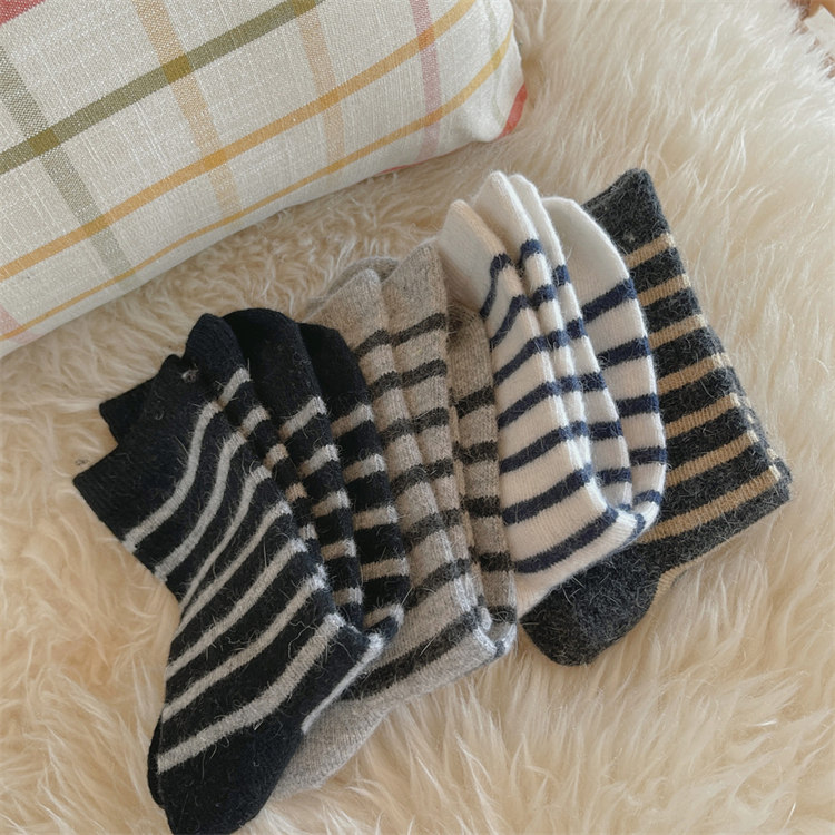 超值混色四雙入 | 超暖羊毛厚實軟糯 | 優雅清爽條紋色系 | 加固耐磨耐洗滌 | 透氣防臭 | 高檔澳洲羊毛保暖親膚舒適清新條紋男女保暖防臭襪子