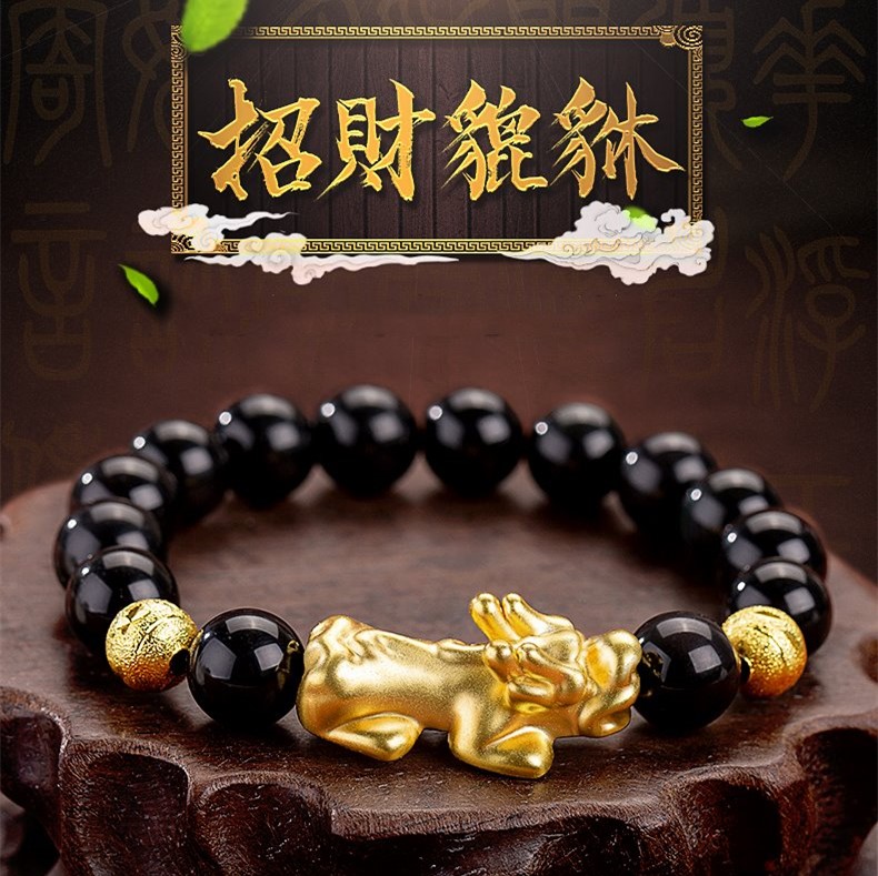 黑曜石絨沙金貔貅手鍊