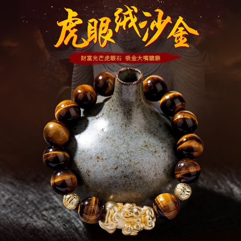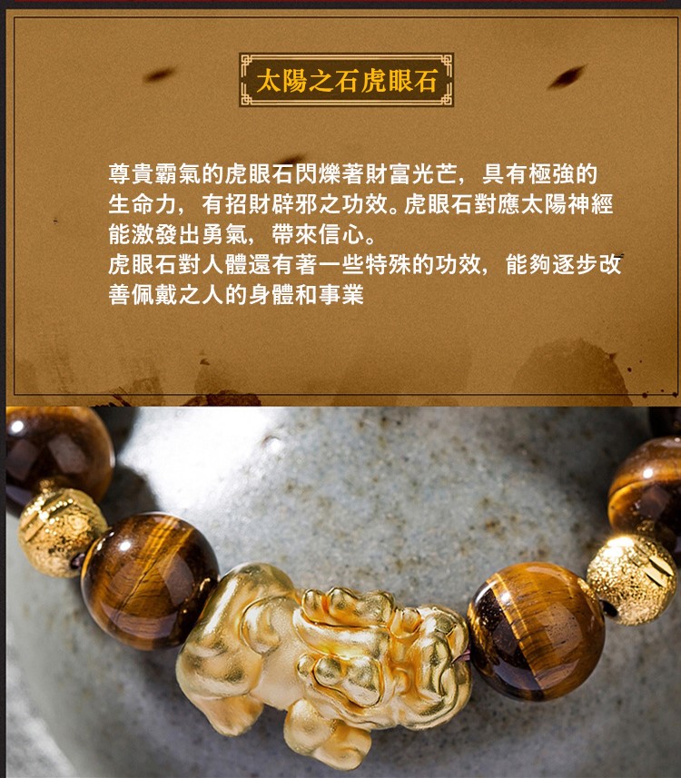 虎眼石絨沙金貔貅手鍊