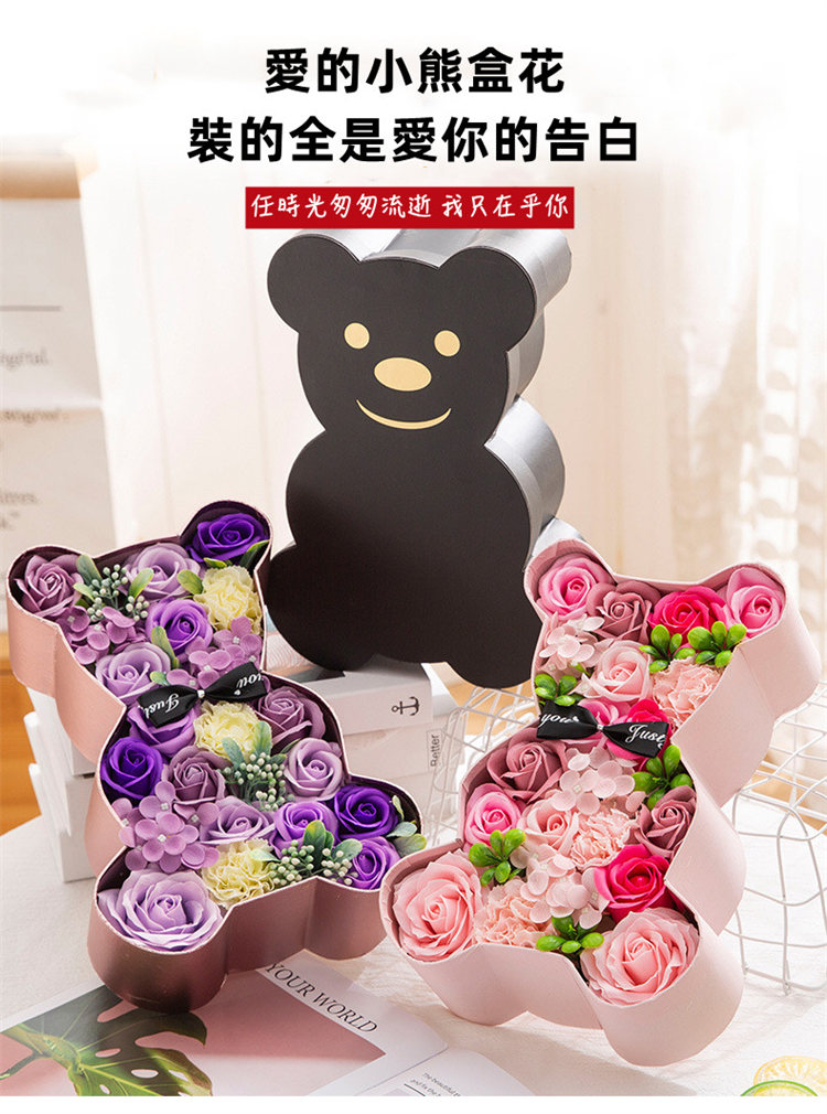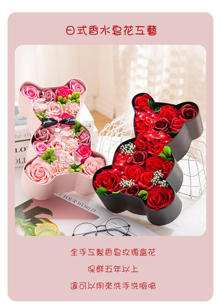 愛的小熊玫瑰盒花 | 日式香水皂花製花工藝 | 浪漫告白送女友老婆禮物任時光流逝我只在乎你愛的小熊永生玫瑰盒花禮盒