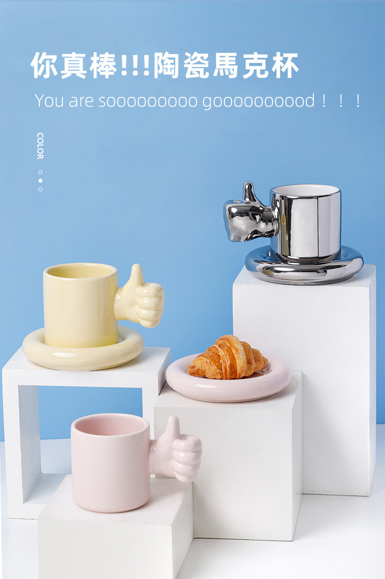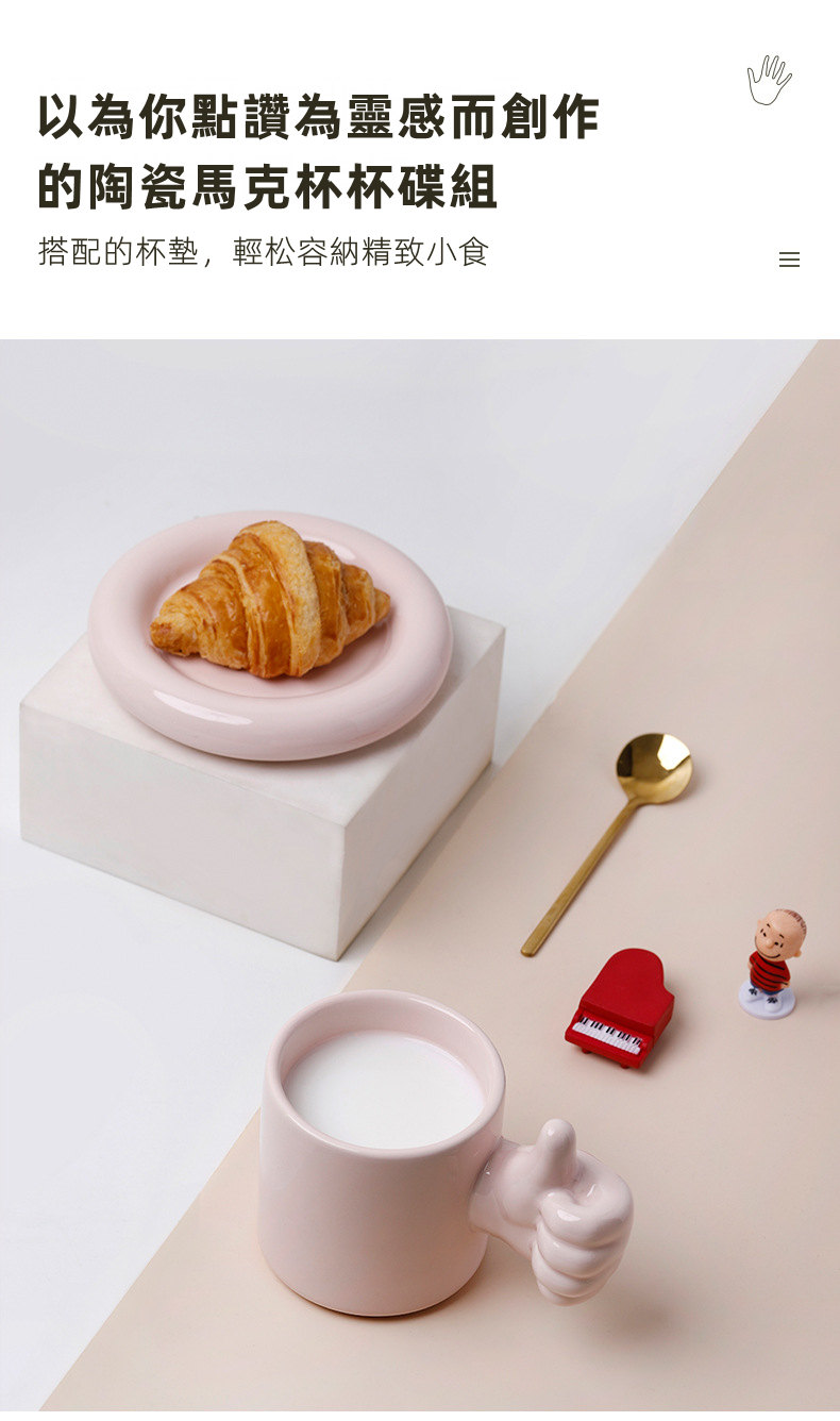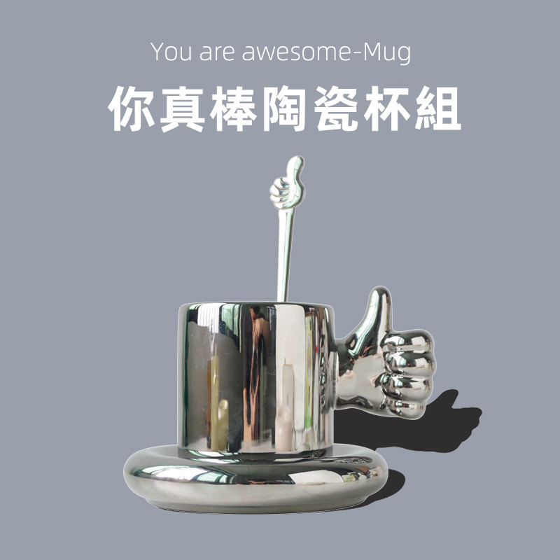 為你點讚你真棒馬克杯碟勺套組 | 高溫燒製手工陶瓷 | 給他愛的鼓勵超暖心又實用禮物你真棒陶瓷馬克杯碟勺套組