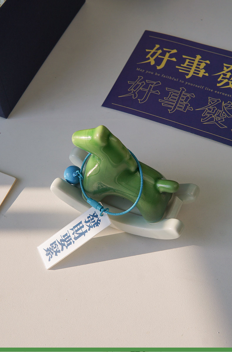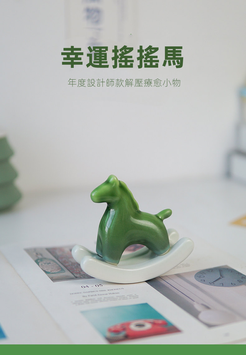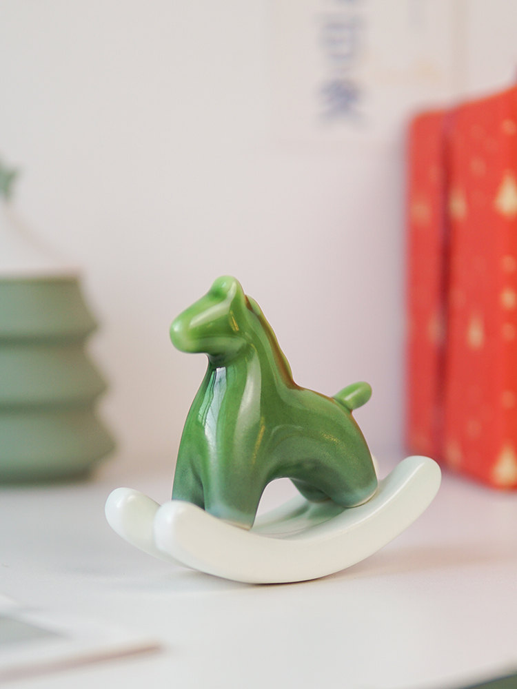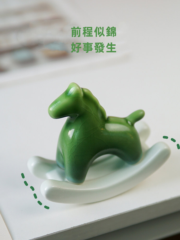 搖來幸運的搖搖馬 | 買一送一 | 手工高溫陶瓷燒製 | 年度設計師款療愈禮物給你幸運的綠色搖搖馬解壓擺件辦公室居家小物