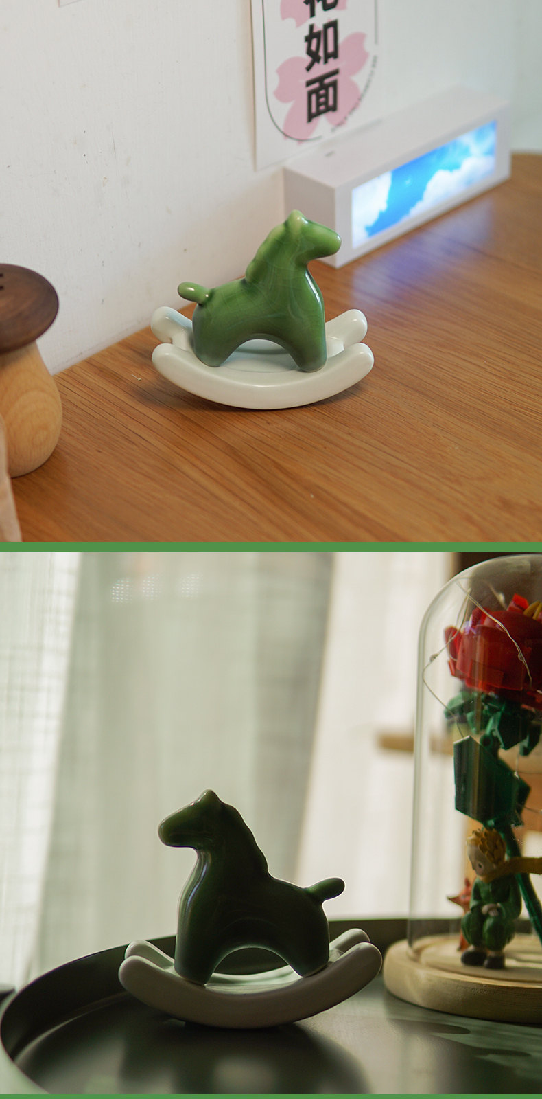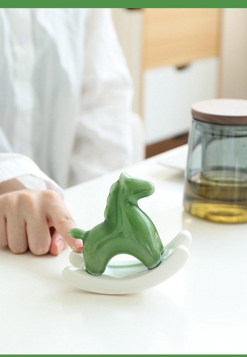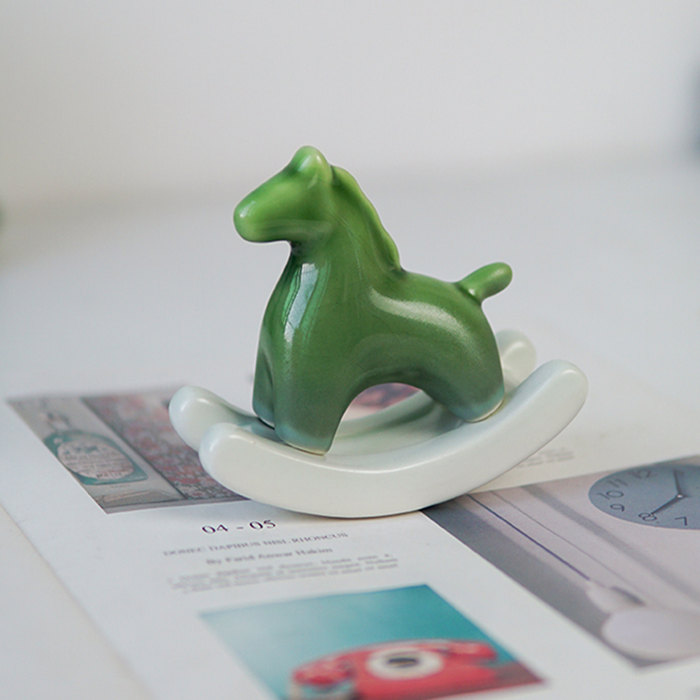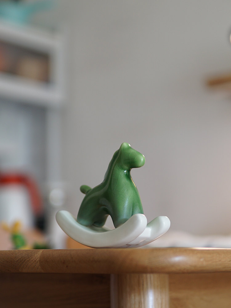 搖來幸運的搖搖馬 | 買一送一 | 手工高溫陶瓷燒製 | 年度設計師款療愈禮物給你幸運的綠色搖搖馬解壓擺件辦公室居家小物