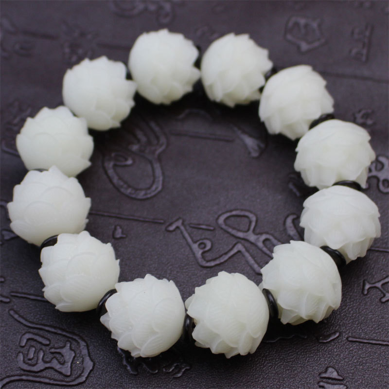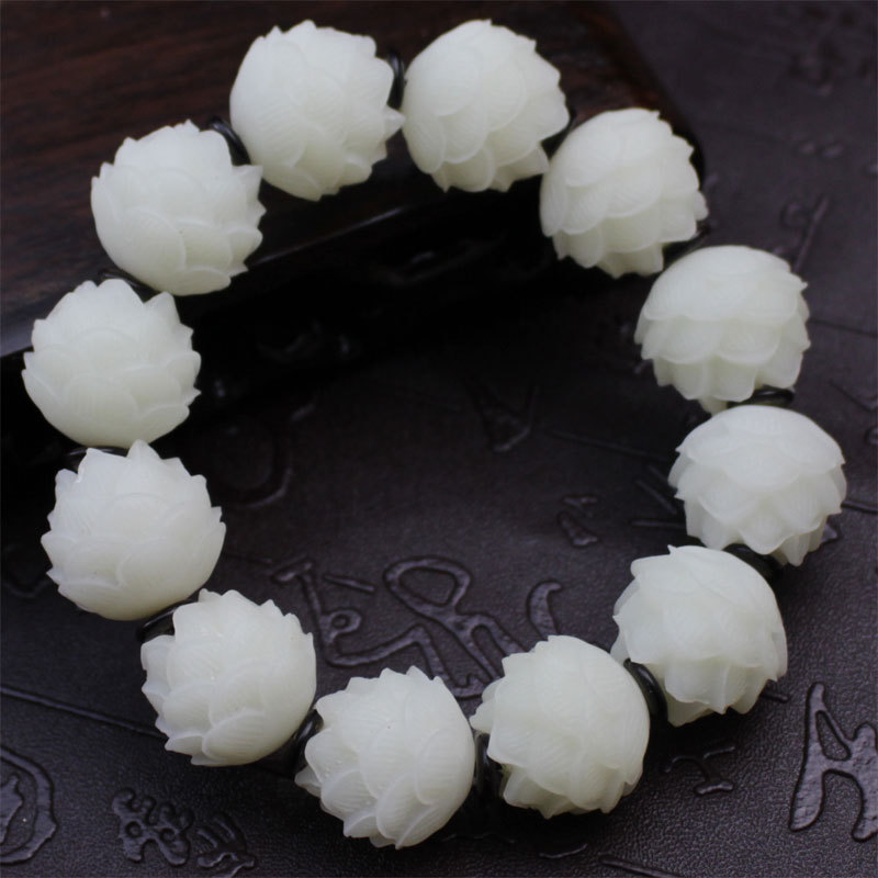 天然精品文玩白玉菩提根雕刻五層蓮花古風單圈佛珠手串 (20mm)