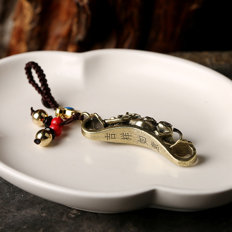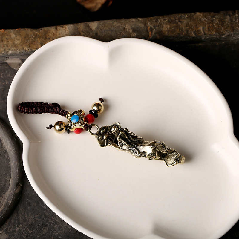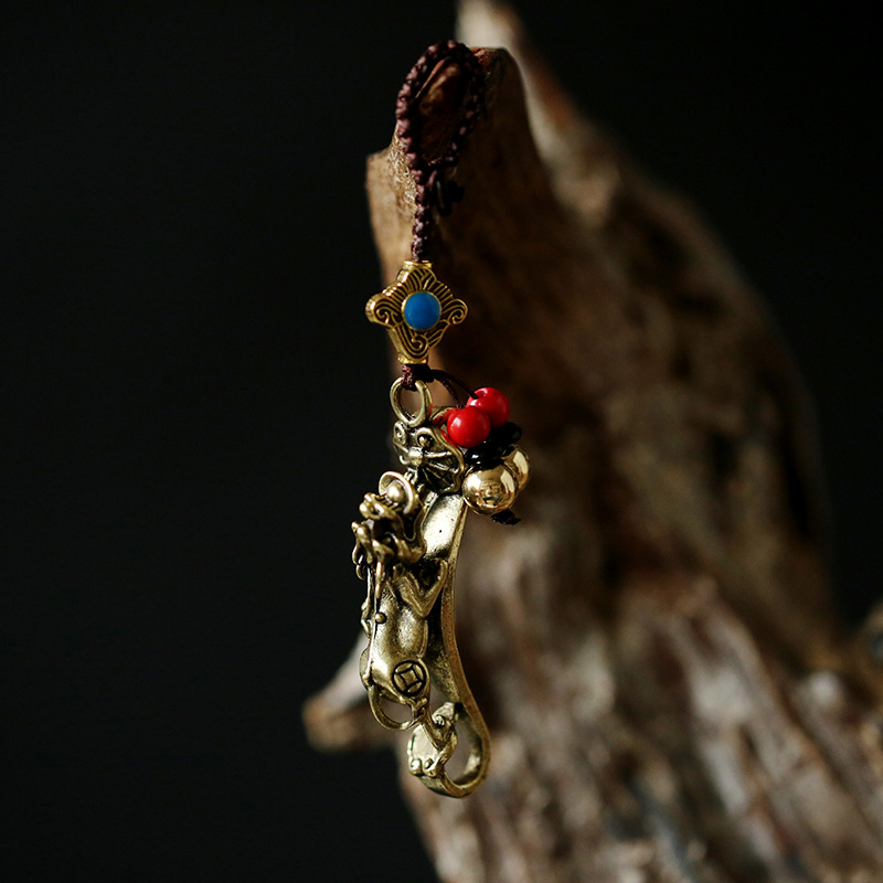 【純銅如意貔貅鑰匙圈】招財掛飾復古實心純銅如意貔貅鑰匙圈 (純銅)