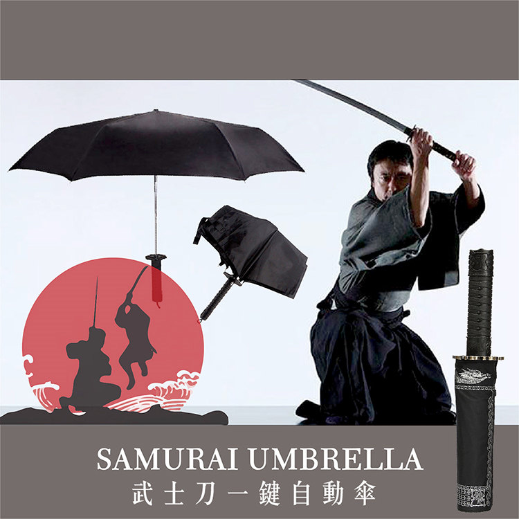 江湖夜雨重工武士傘 | 一鍵自動開收 | 高強玻璃纖維傘骨 | 暴雨級重工高密傘佈玻纖傘骨江湖主題三折雨傘