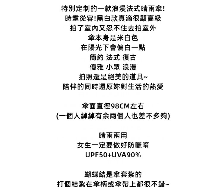 恬靜法式特別定制晴雨傘 | 晴雨兩用 | UPF50+超強防曬 | 高級定制法式玫瑰米色傘面超強防曬復合黑膠晴雨兩用陽傘口袋折疊傘