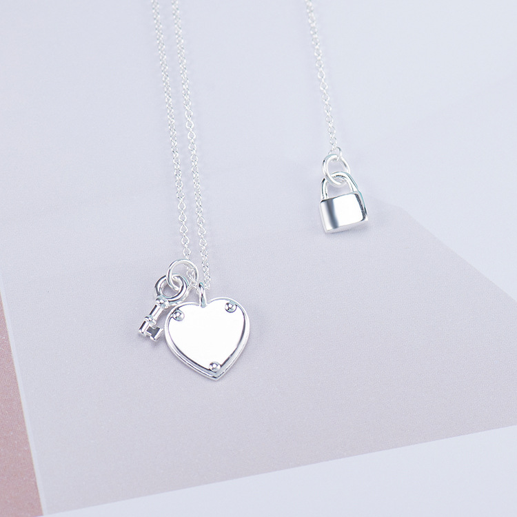 S925純銀輕奢OL氣質簡約愛心鑰匙吊墜項鍊 (925純銀)