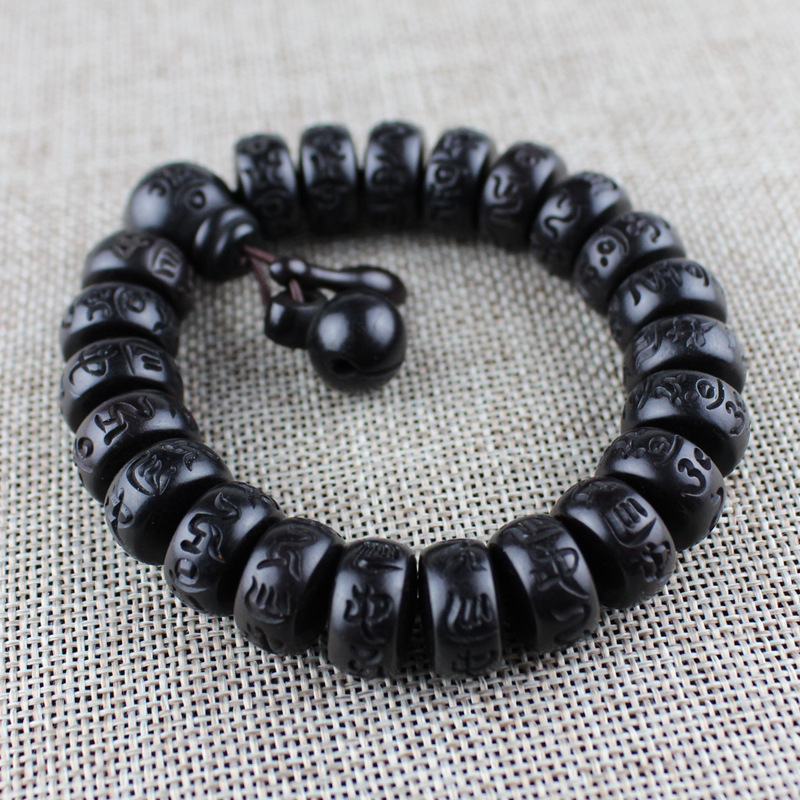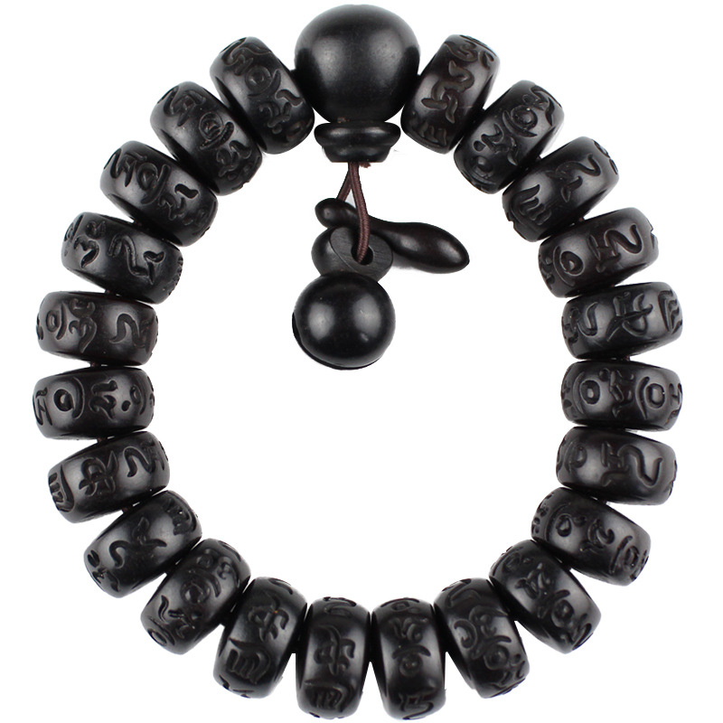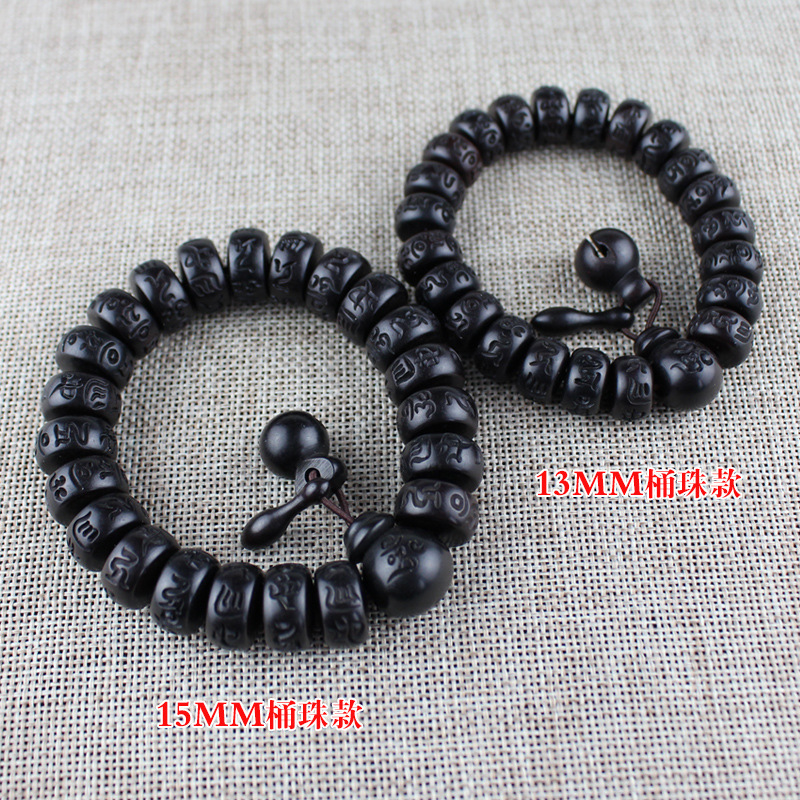 【天然雷擊棗木桶珠】【六字真言】純手工製天然雷擊棗木雕刻六字真言桶珠單圈佛珠手串
