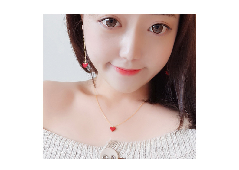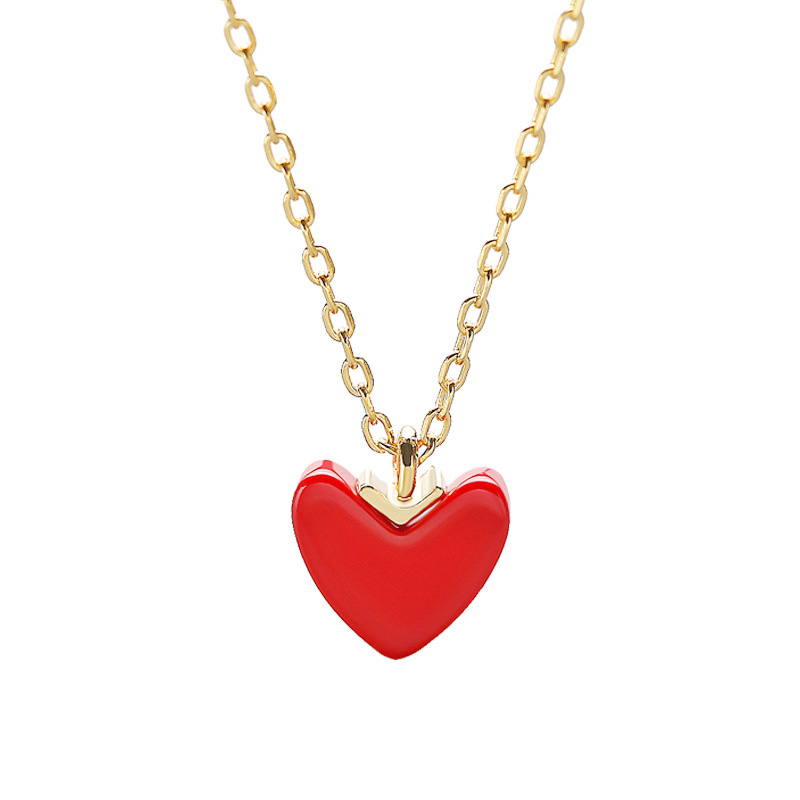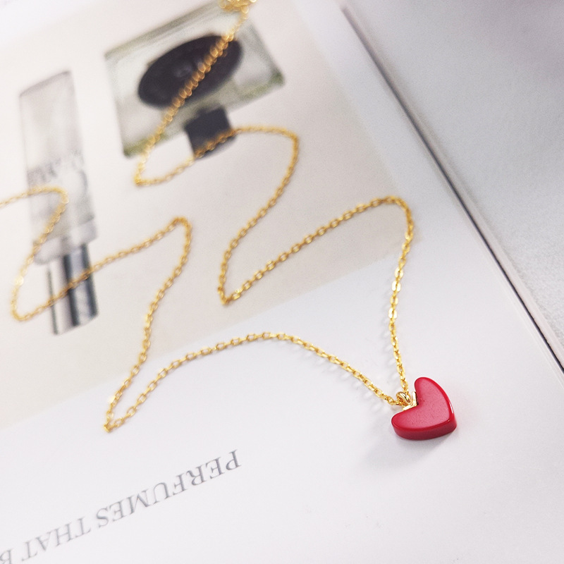 S925純銀甜美氣質小紅愛心鎖骨鍊項鍊 (925純銀 鍍24K金)