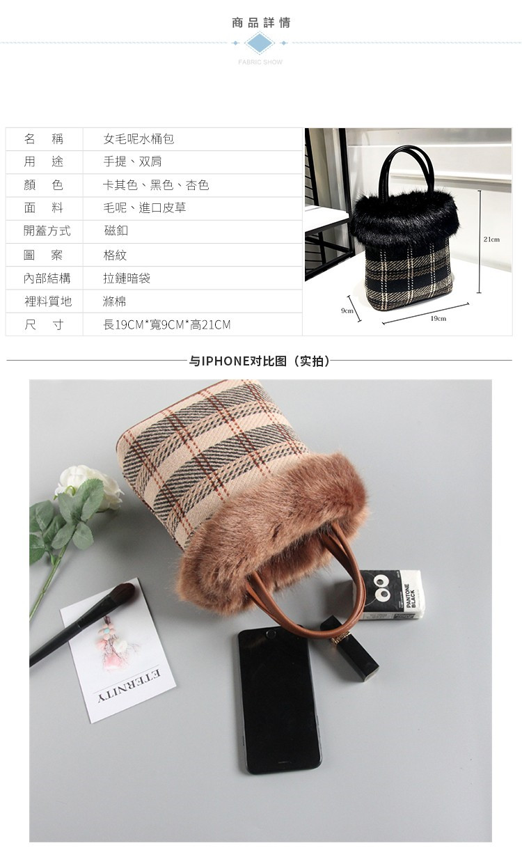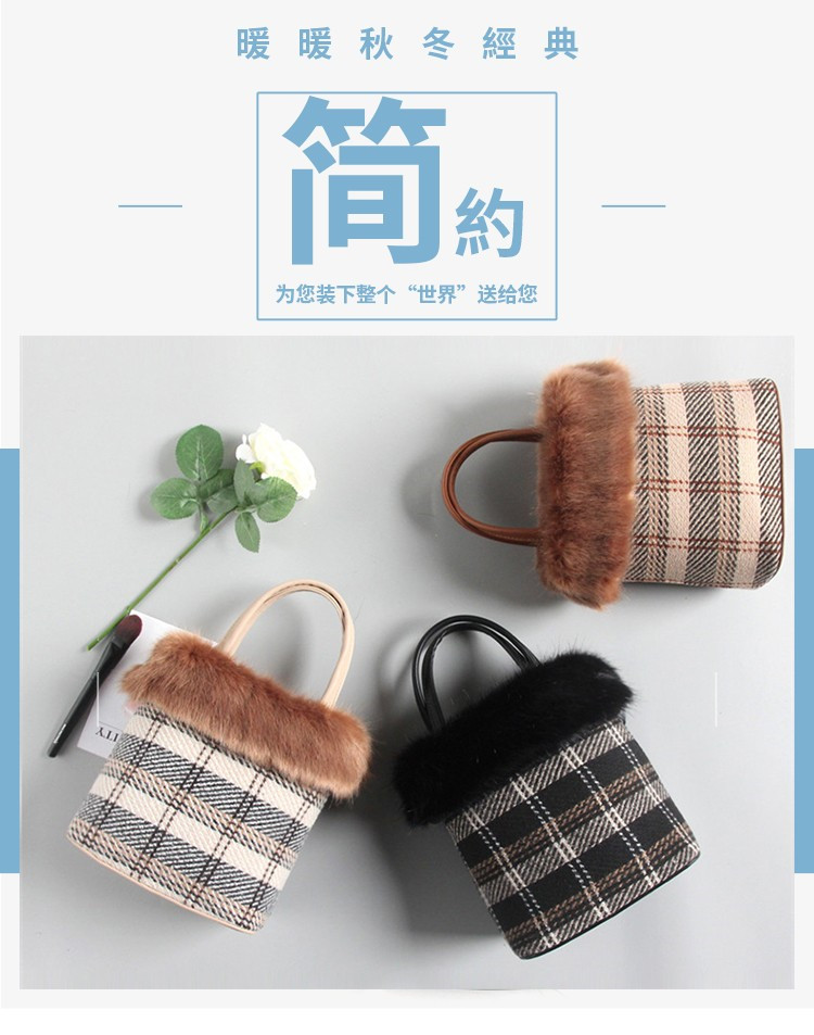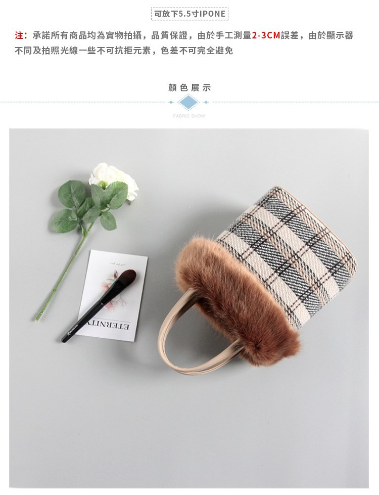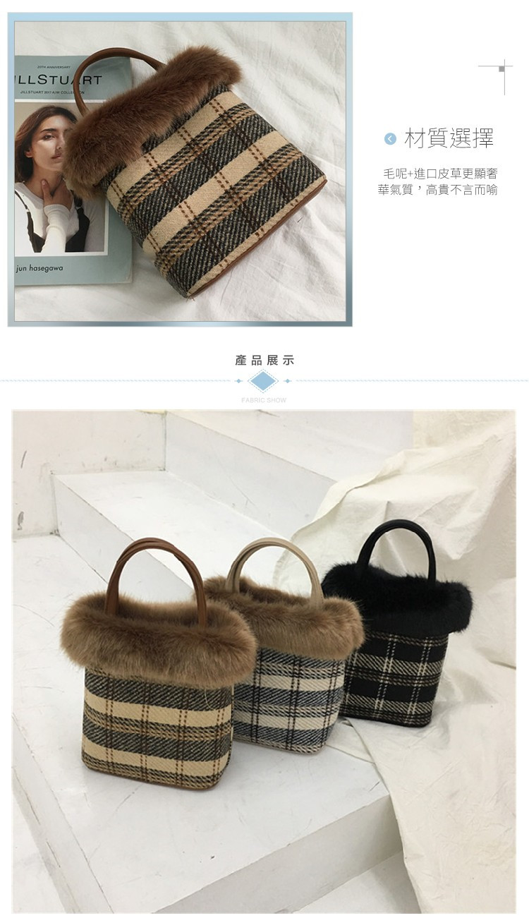 【蘇格蘭格紋】【超柔毛絨】超柔觸感毛絨蘇格蘭格紋手提肩背包