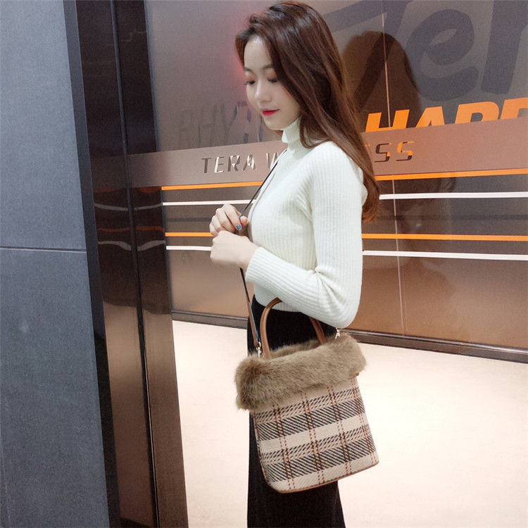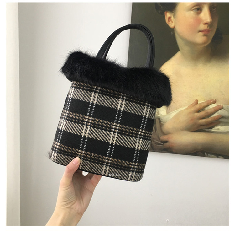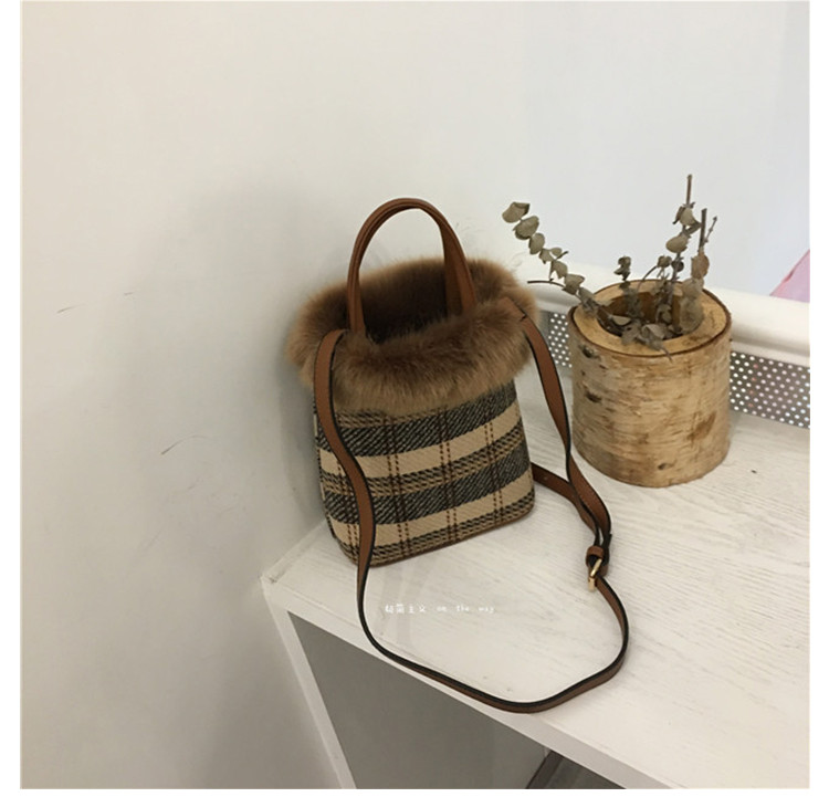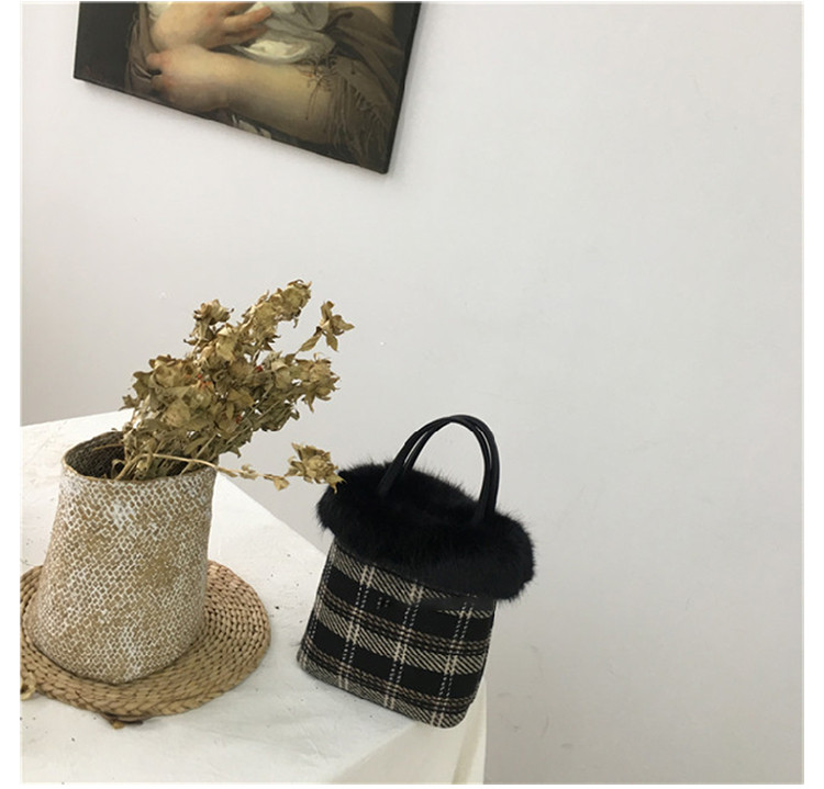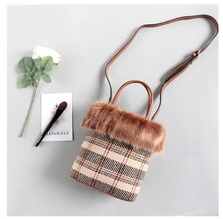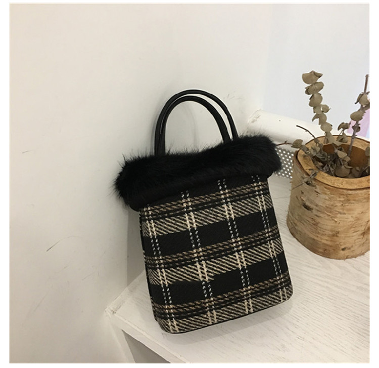 【蘇格蘭格紋】【超柔毛絨】超柔觸感毛絨蘇格蘭格紋手提肩背包