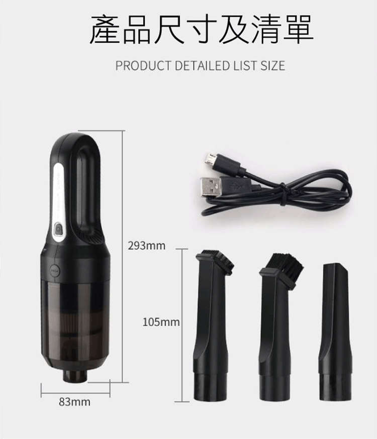 【無線】【HEPA過濾】【車家兩用】大吸力多吸頭無線便攜USB充電多用途手持吸塵器