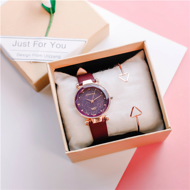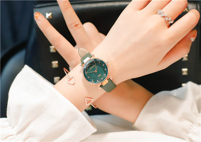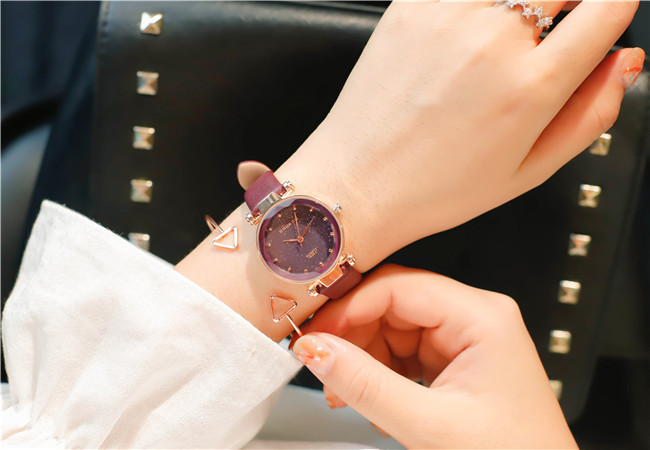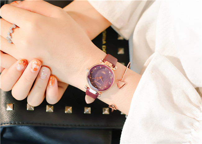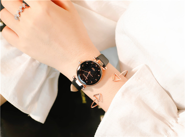 【超美晚宴錶】Ulzzang星空元素玫瑰金邊框菱形切面鏡面女士晚宴手錶