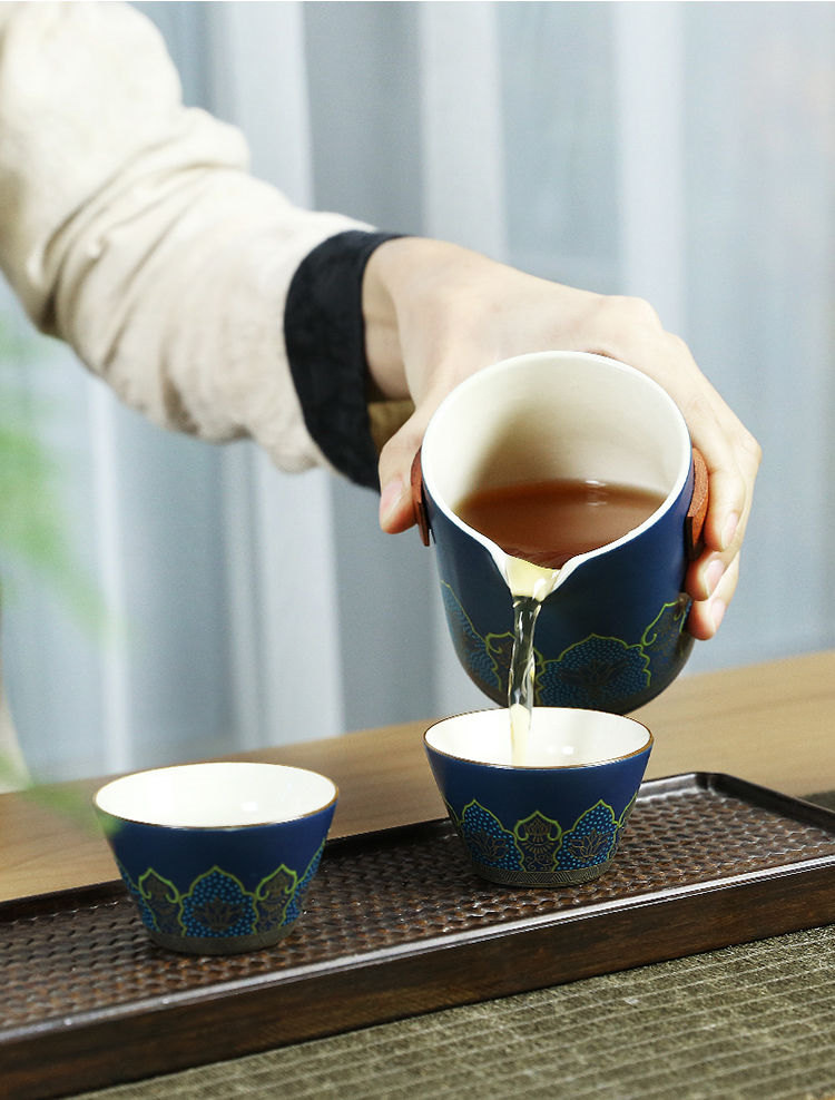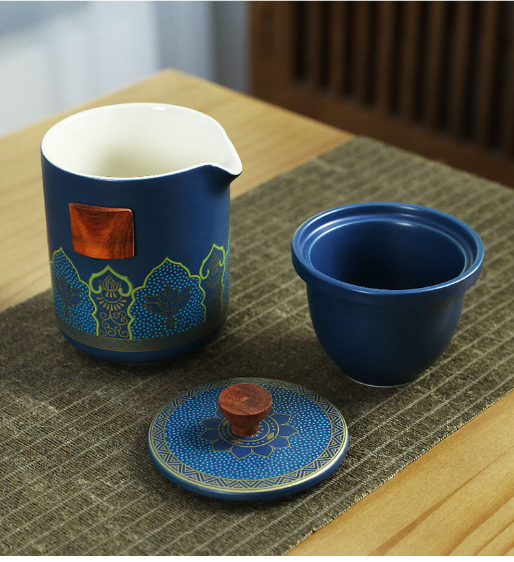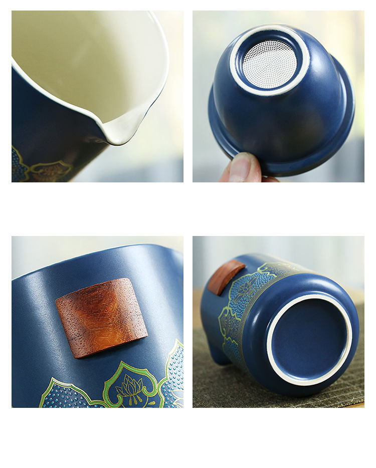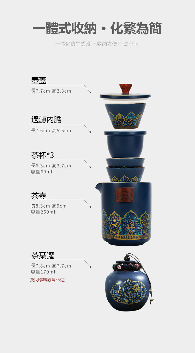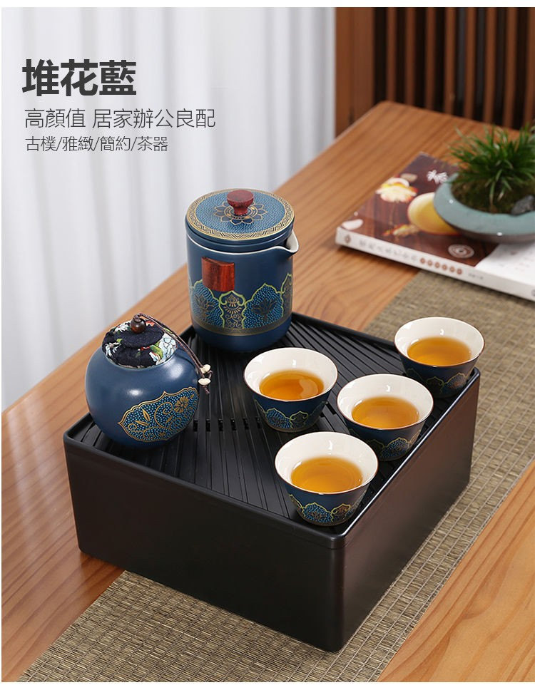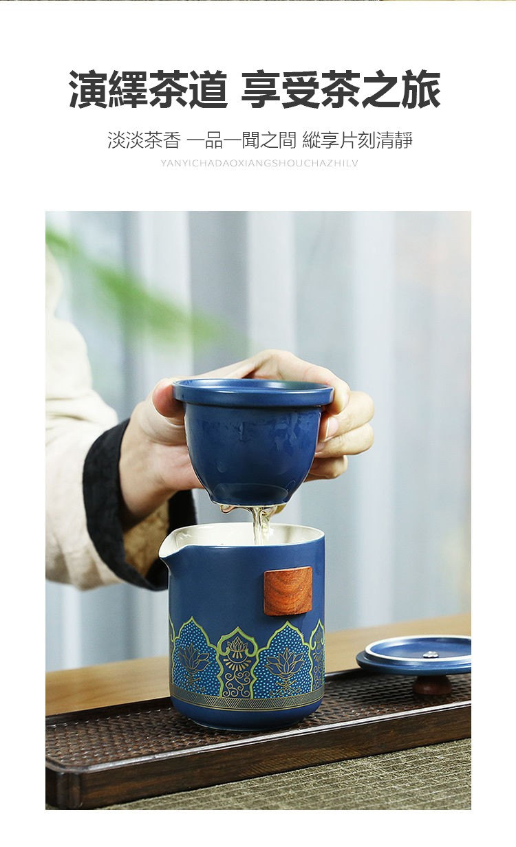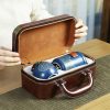 古韻茶香功夫旅行茶具組 | 一壺三杯一茶罐 | 高檔手提皮質禮盒 | 品味送禮送男生送爸爸古韻茶香瓷都原礦陶土堆花功夫茶具手提禮盒組