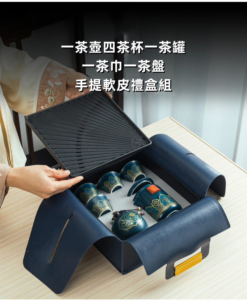 • 一壺四杯茶罐茶巾茶盤軟皮包禮盒