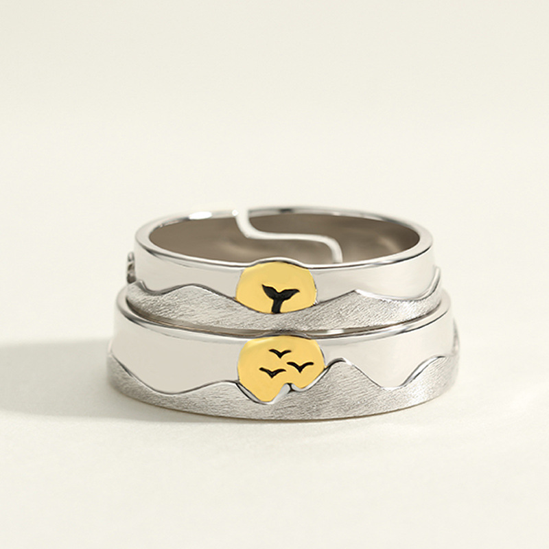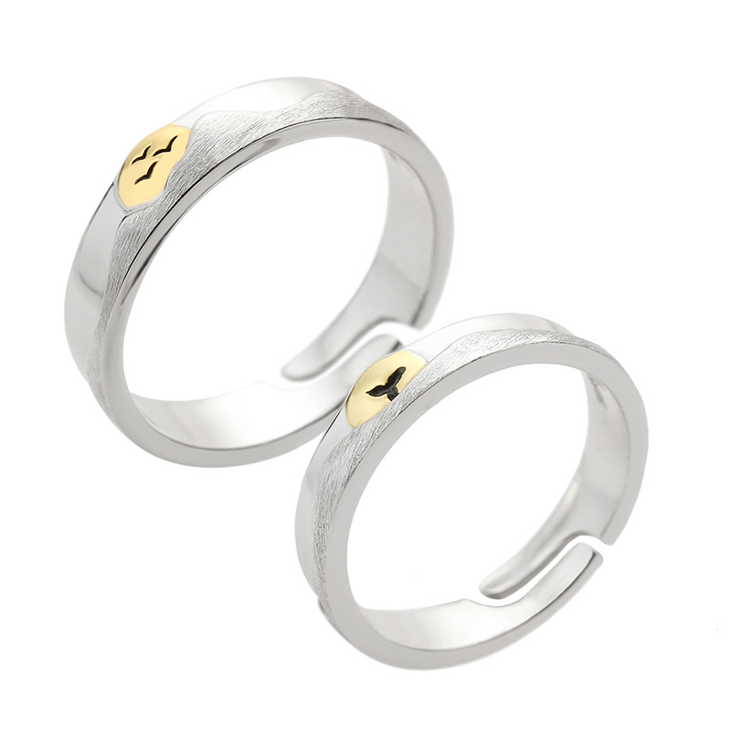【歸鳥】【S925純銀】設計師款朝朝暮暮歸鳥男女開口戒指情侶對戒