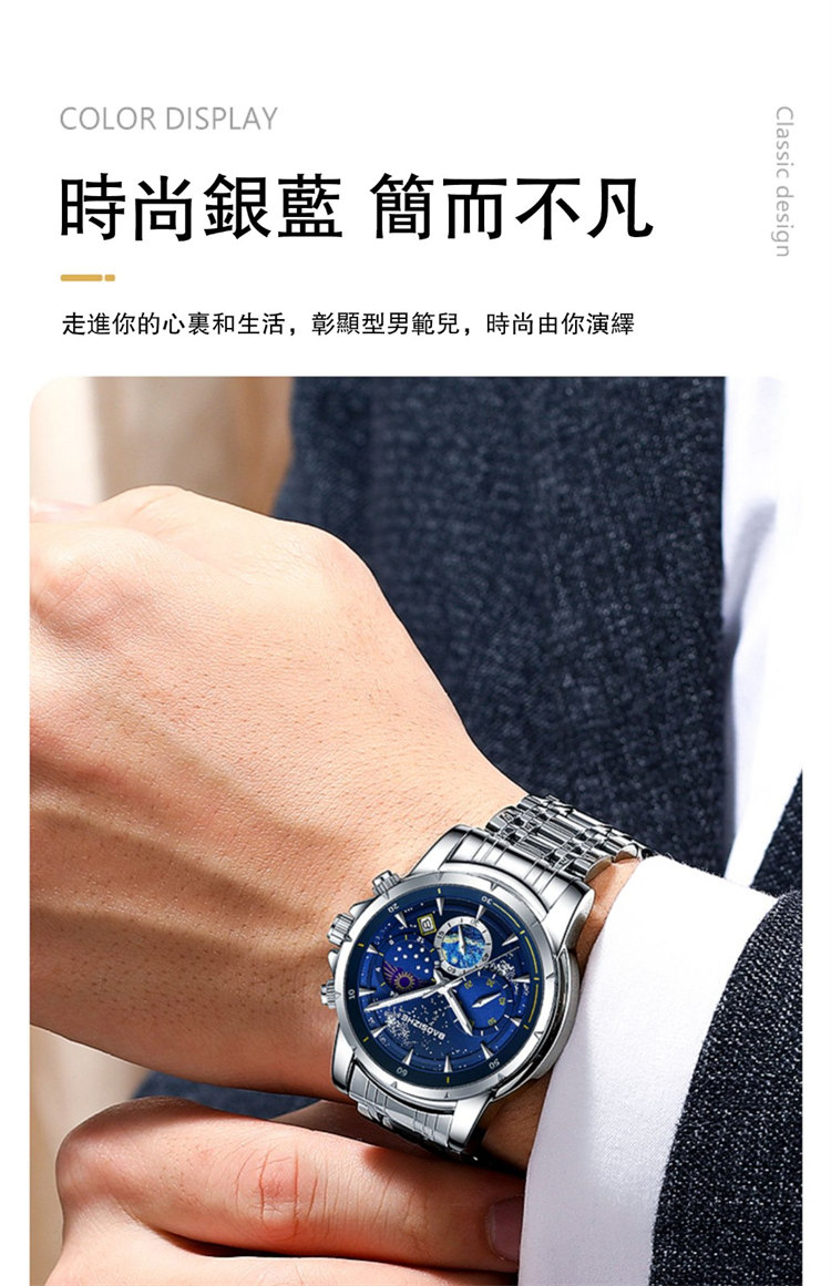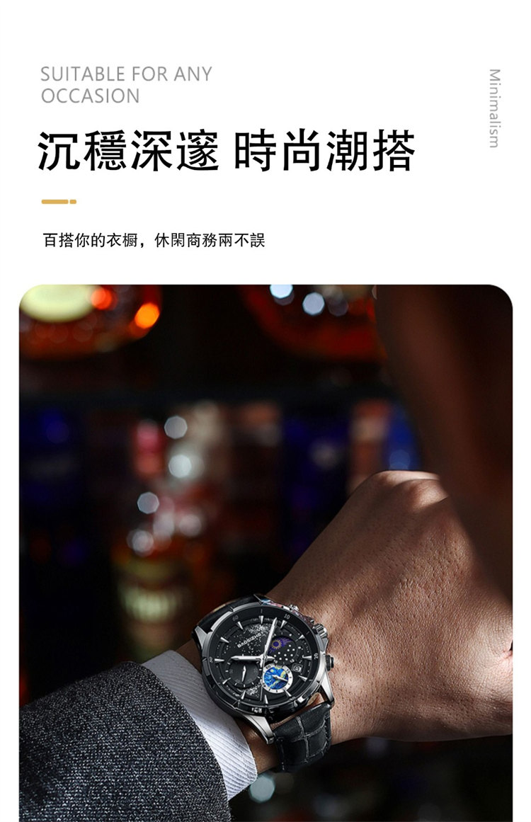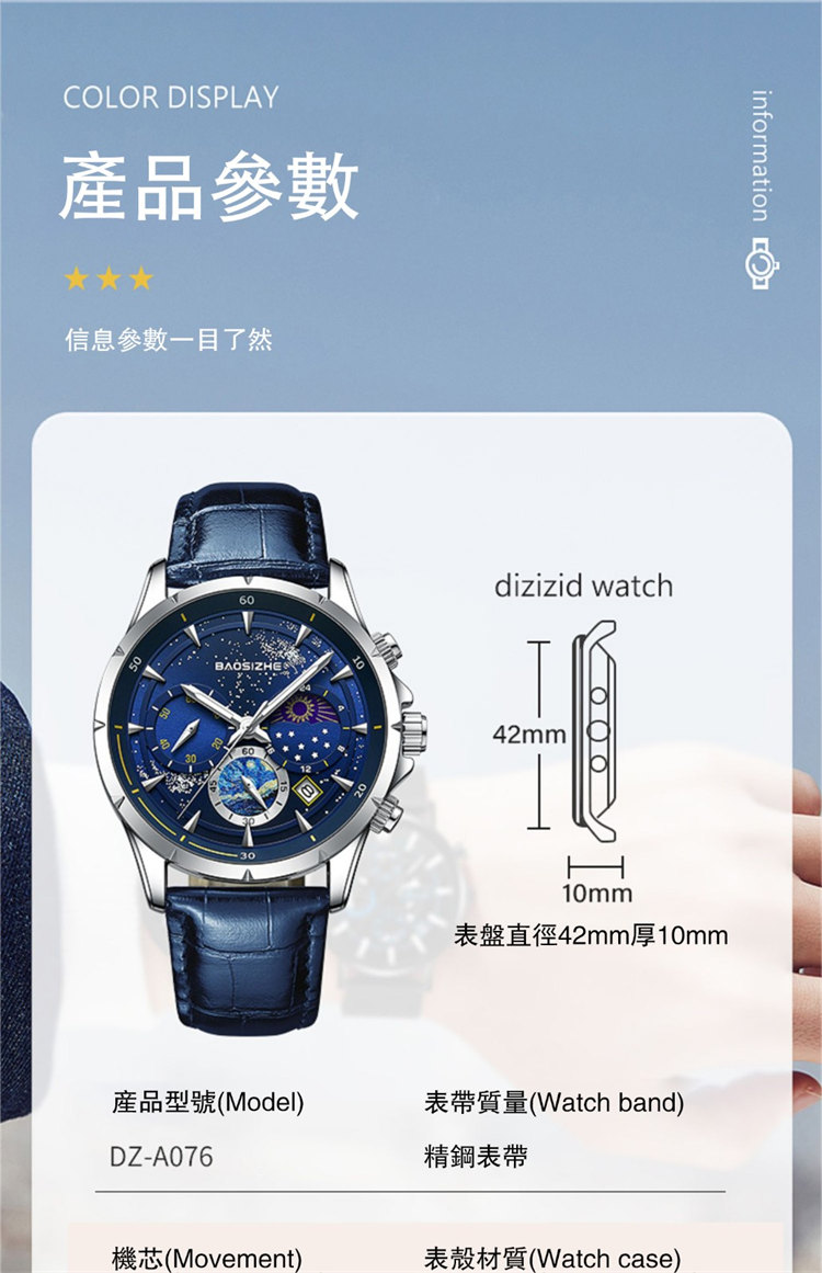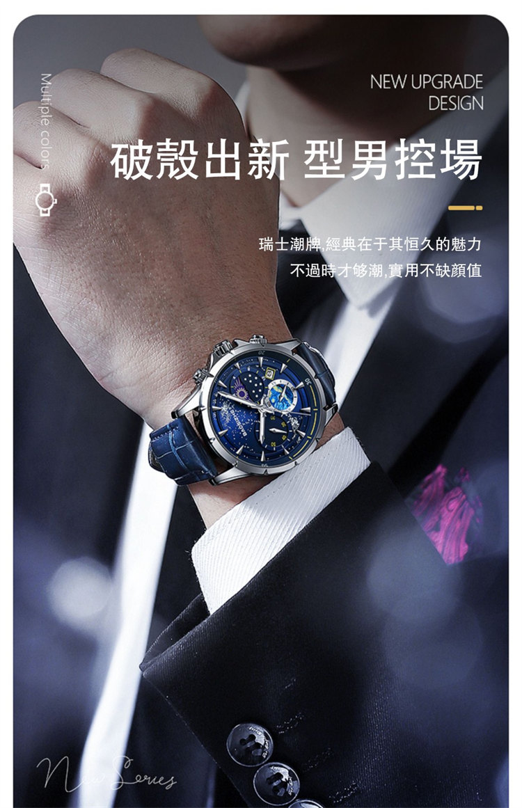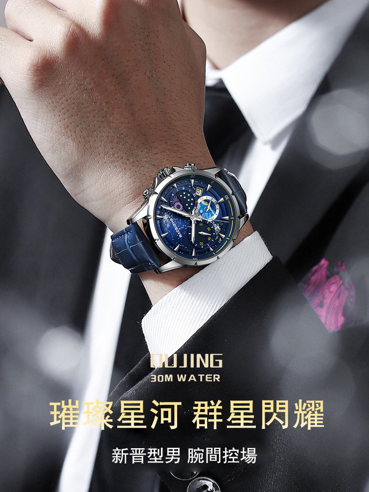 璀璨星河系列腕錶 | 月相星河小錶盤 | 日本星辰機芯 | 30米密封防水 | 高清夜光指針 | 意大利小牛皮錶帶 | BAOSIZHE儒雅紳士璀璨星河男手錶