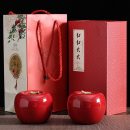 【紅紅火火】小號便攜日式上釉陶瓷蘋果密封茶葉罐雙罐禮盒套組