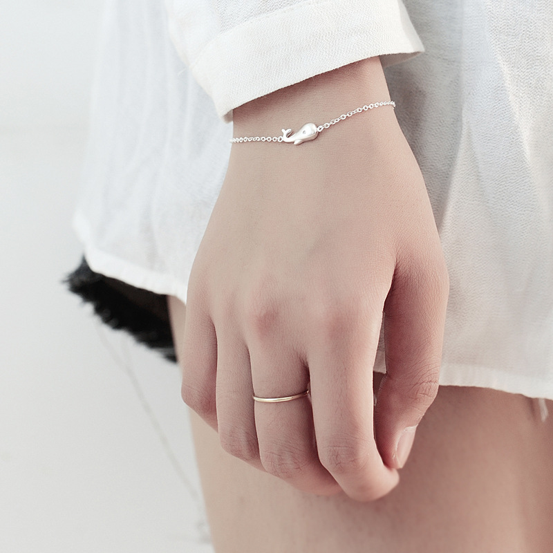 S925純銀森系甜美磨砂可愛小鯨魚百搭手鍊