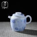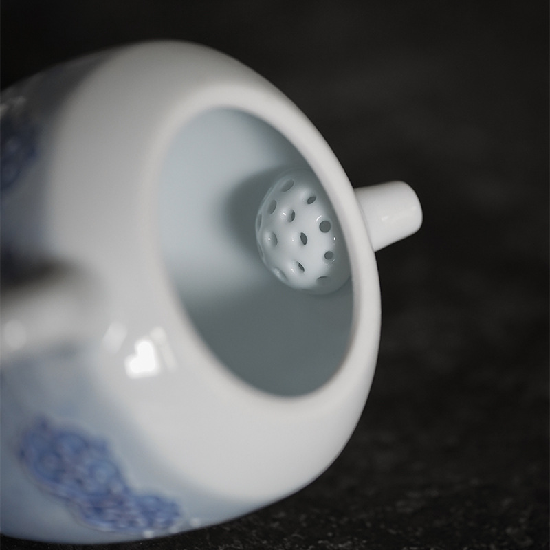 【日本有田焼冰花】【高白瓷】精品手作日本有田焼冰花高白瓷帶過濾球孔手執茶壺 (青花)