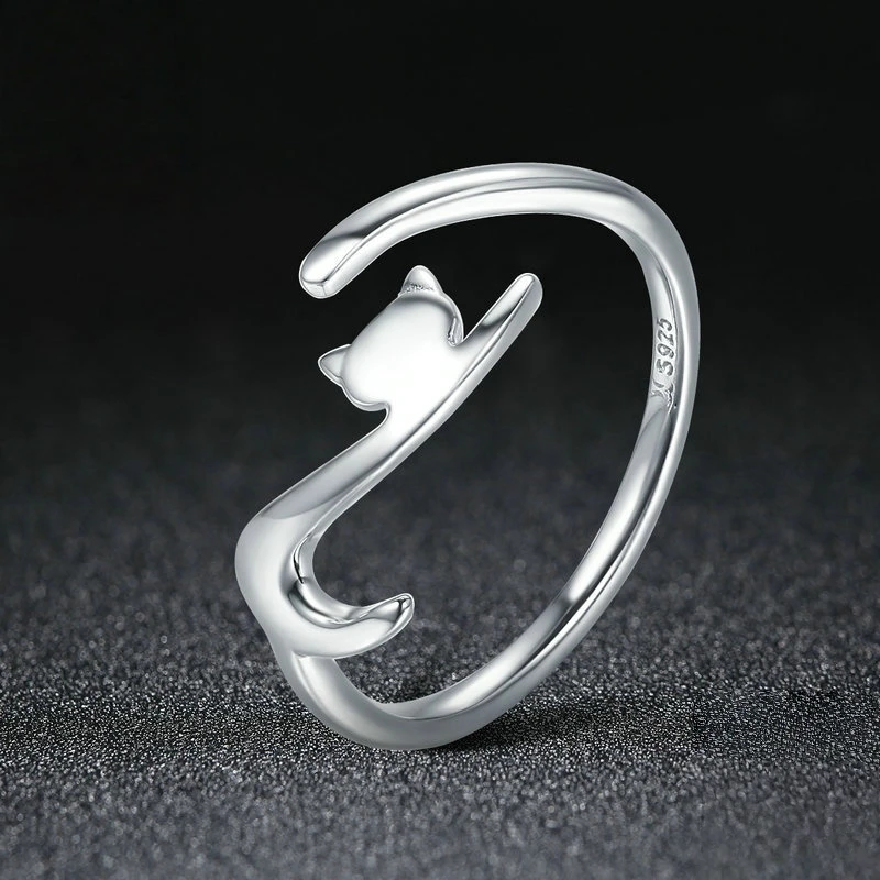 單戒・黏人貓咪 | S925純銀 | 可愛個性黏人貓咪設計款開口女生戒指