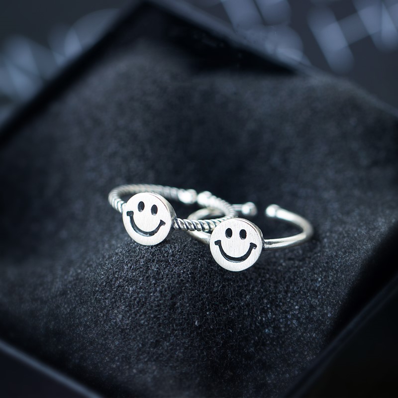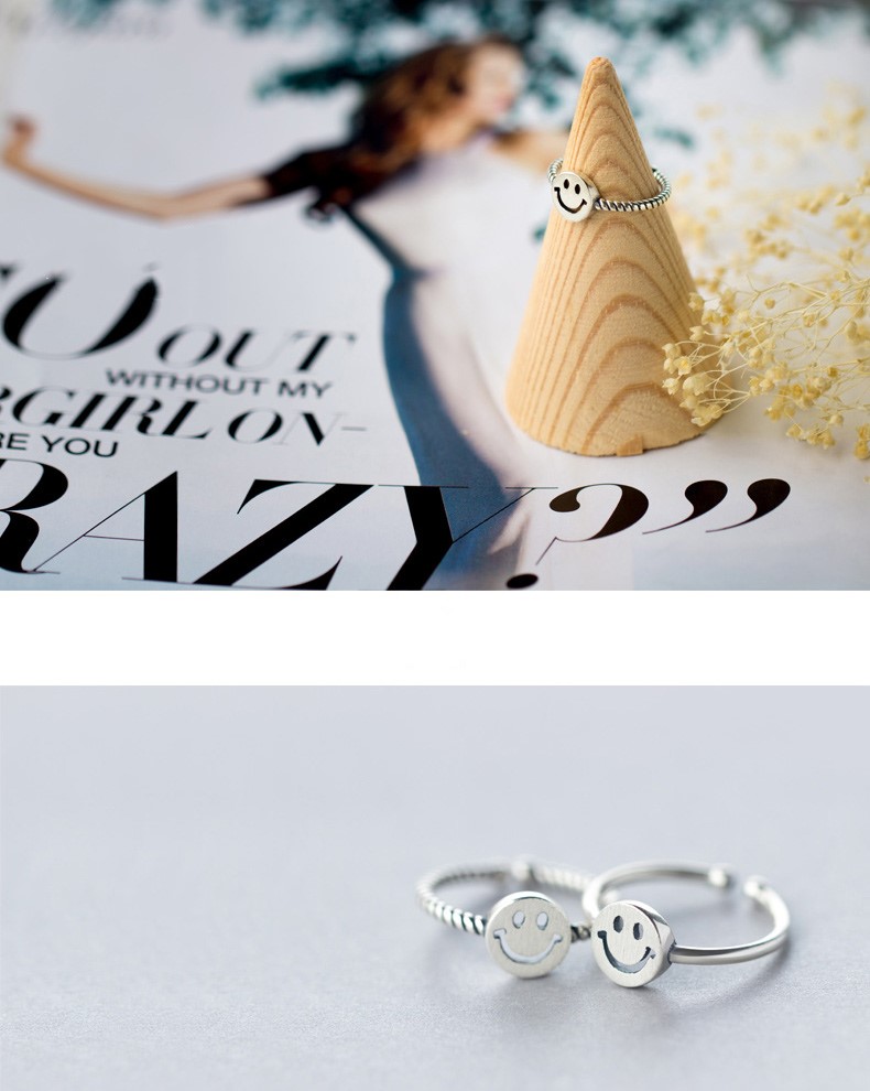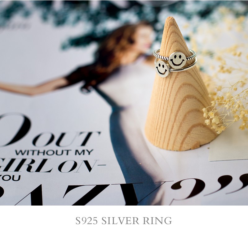 【EMOJI笑臉】簡約個性s925純銀EMOJI笑臉開口女戒