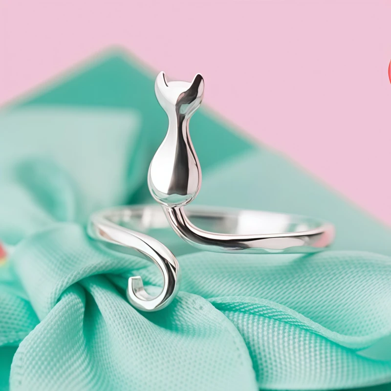 韓國設計款許願貓咪戒指 國際標準s925純銀材質 高級手工打磨拋光工藝 通體精緻閃耀 貓咪高約1cm 寬約0.4cm 貼心開口設計可隨意調整戒圍